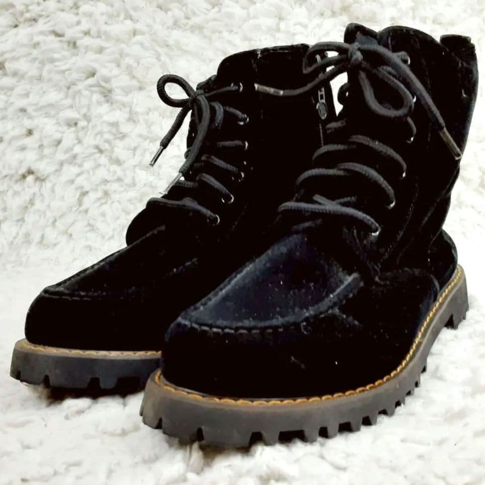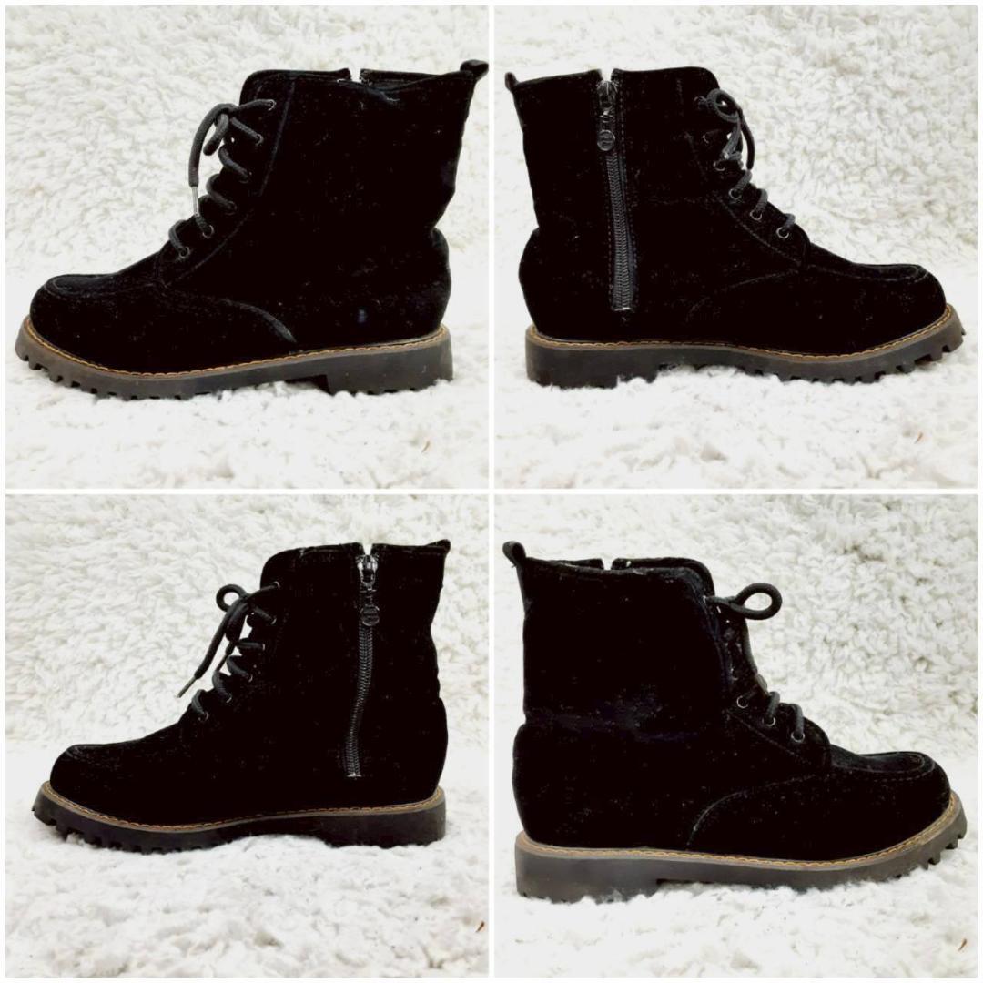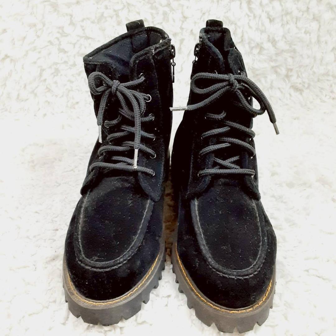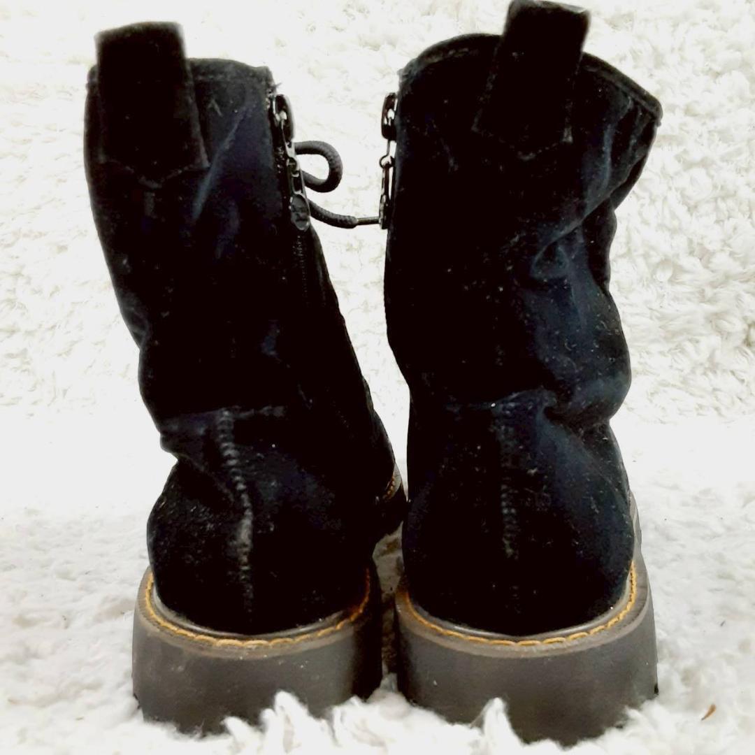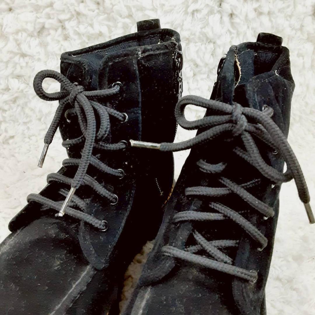 美品 24㎝◎NORTH DATE ノースデイト スノーブーツ ブラック 黒 サイドジップ スウェード スパイク 滑り止め付き
