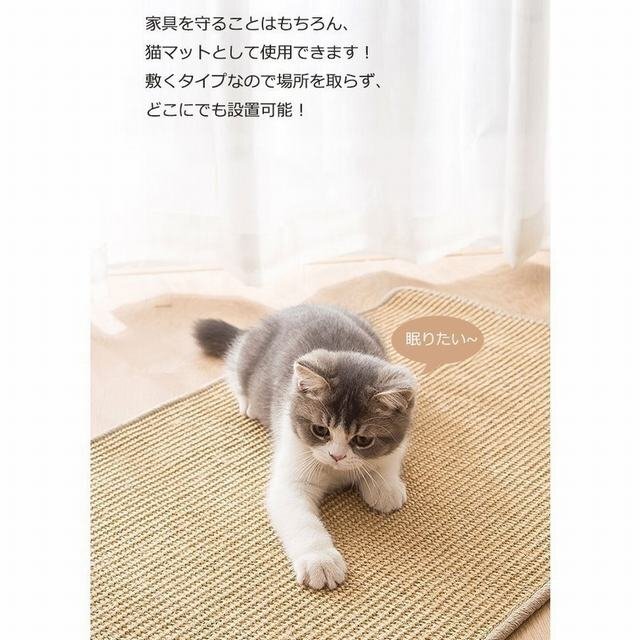 商品内容::シール1枚+4個ツイストピン付き サイズ:40cmx60cm色:ランダム 天然のサイザル繊維で作られ、家具などを守りながら、どんなインテリアにも組み合わせでき、家に自然を感じさせます。猫マットとして使用できます。敷くタイプなので場所を取らず、どこにでも設置可能です。猫ちゃんが食事をする時にも役に立ちます。汚れや水に強く、丈夫で耐久性も高いです。 ご注意: 1.天然素材なので、密度?色?テクスチャに異なる場合がございます。天然素材な特性を良く理解し、その特性を魅力としてとらえいただければ幸いです。 2、生産ロットにより裏に滑り止め粒子がついていない場合もあります。ご使用に支障はありません。 3.水洗い不可。定期的に掃除機をかけ、向きを変えてお使えてください。 4.最初にお飼い主さんはペットを指定させた爪とぎの場所へ誘導することをおすすめいたします。 海外インポートなので、細かいホツレや汚れが有る場合がございます。そして,宅配便で発送しますので,箱付きの商品は角部分が凹む可能性がございます。ご理解の上ご購入ください。 ★お支払い方法はYahooかんたん決済しか選べないので,ご了承ください。 ★発送について★ ①基本は佐川急便で,ご入金が確認取れたあと,3-7日以内に発送させていただきます。場合によって1日2日ぐらい延長する可能性がございます。ご了承ください。 ②小物は他の宅配会社に頼む可能性がございます。その場合は事前に連絡させていただきます。 ③送料に付いて:沖縄、北海道、一部離島は別途料金が発生します。ご了承ください ★注意事項★ ご質問へのご返信は、営業時間外、また担当者不在などによりご返信が遅れる場合もございますので、あらかじめご了承ください。 質問欄からの値下げ交渉、返信はご対応出来ませんので予めご了承下さい。 在庫が切れた時,オークション自体を早期終了する場合がございます。 商品発送完了時に評価を行っております。評価の必要ない方は予めご連絡くださいますようお願い申し上げます。 ご連絡をいただけないまま27日以上過ぎました場合、落札者様の都合で削除させていただく可能性がございます。その場合自動的に悪い評価がついてしまいますのでご了承ください。 オークション管理上、商品の同梱の際の送料はオークション毎にかかります。ご了承お願いいたします。