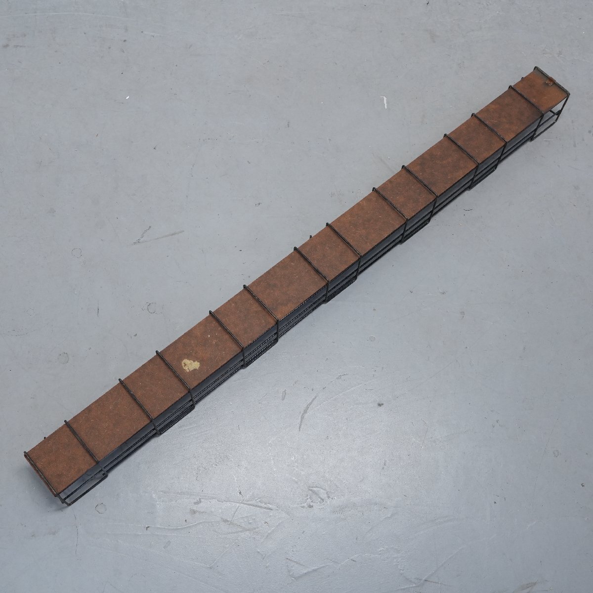 | 商品説明 explanation | ヴィンテージの壁掛け式のワイヤーラックです。 圧縮ボードの底板と黒いワイヤーフレームが組み合わさったデザインです。 幅広く、小瓶や小さめの観葉植物などを飾るのにおすすめです。 ご自宅やお店のディスプレイにいかがでしょうか。 ※小物類は対象外です。 |