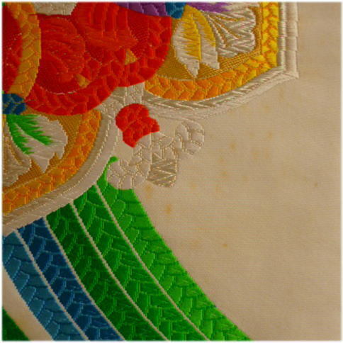 掘り出しました!7900円【正絹】白地組紐文袋帯【中古品】