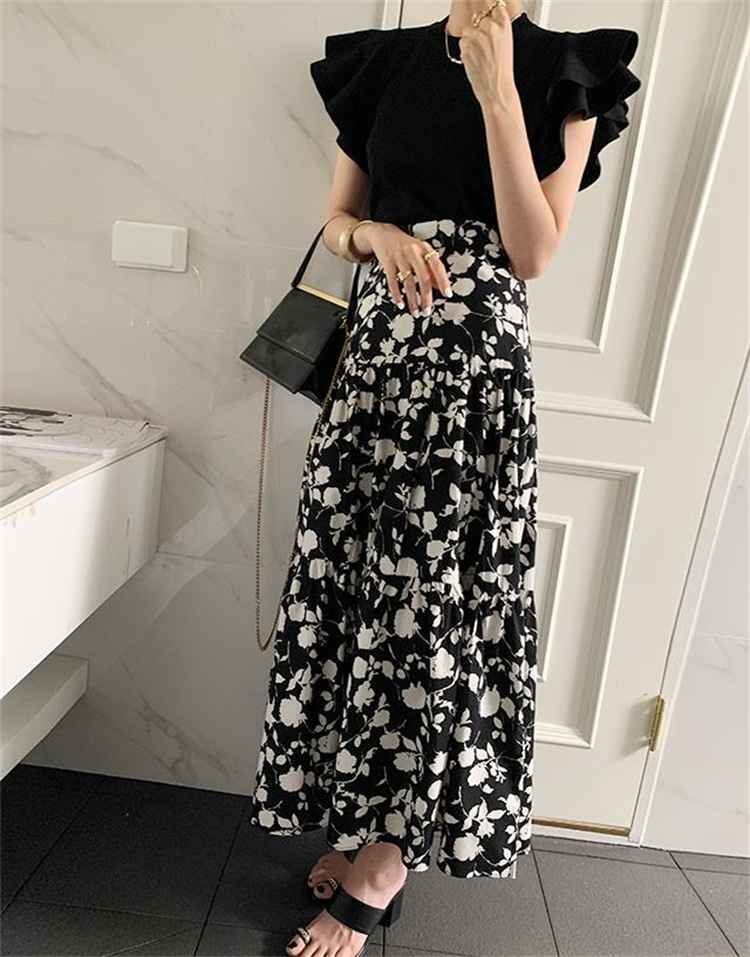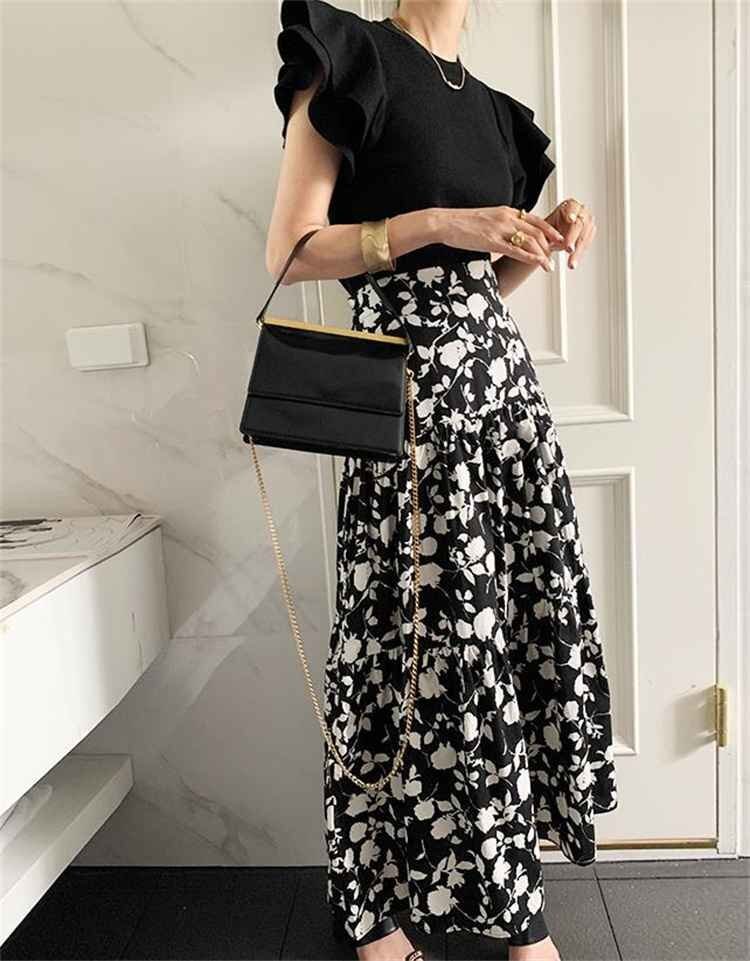 ■カラー:ブラック(トップス),ホワイト(トップス),ブラック(スカート),ホワイト(スカート)