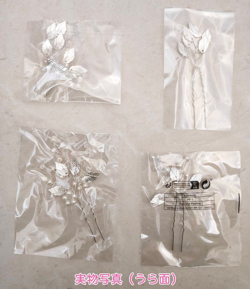 パールとリーフデザインが可愛いヘアコーム・ヘアピンの4点セット