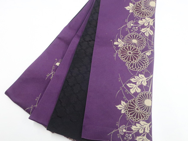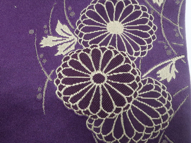 《京都一輝堂》半幅帯 菊柄 美品 25w12-14238