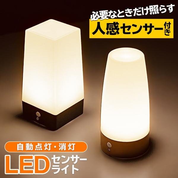 センサーライト LED 角型 ライト 暖色 自動点灯 消灯 電池式 ランプ 寝室 間接照明 デスクライト 送料無料- 60N◇ ライト:角型CH609