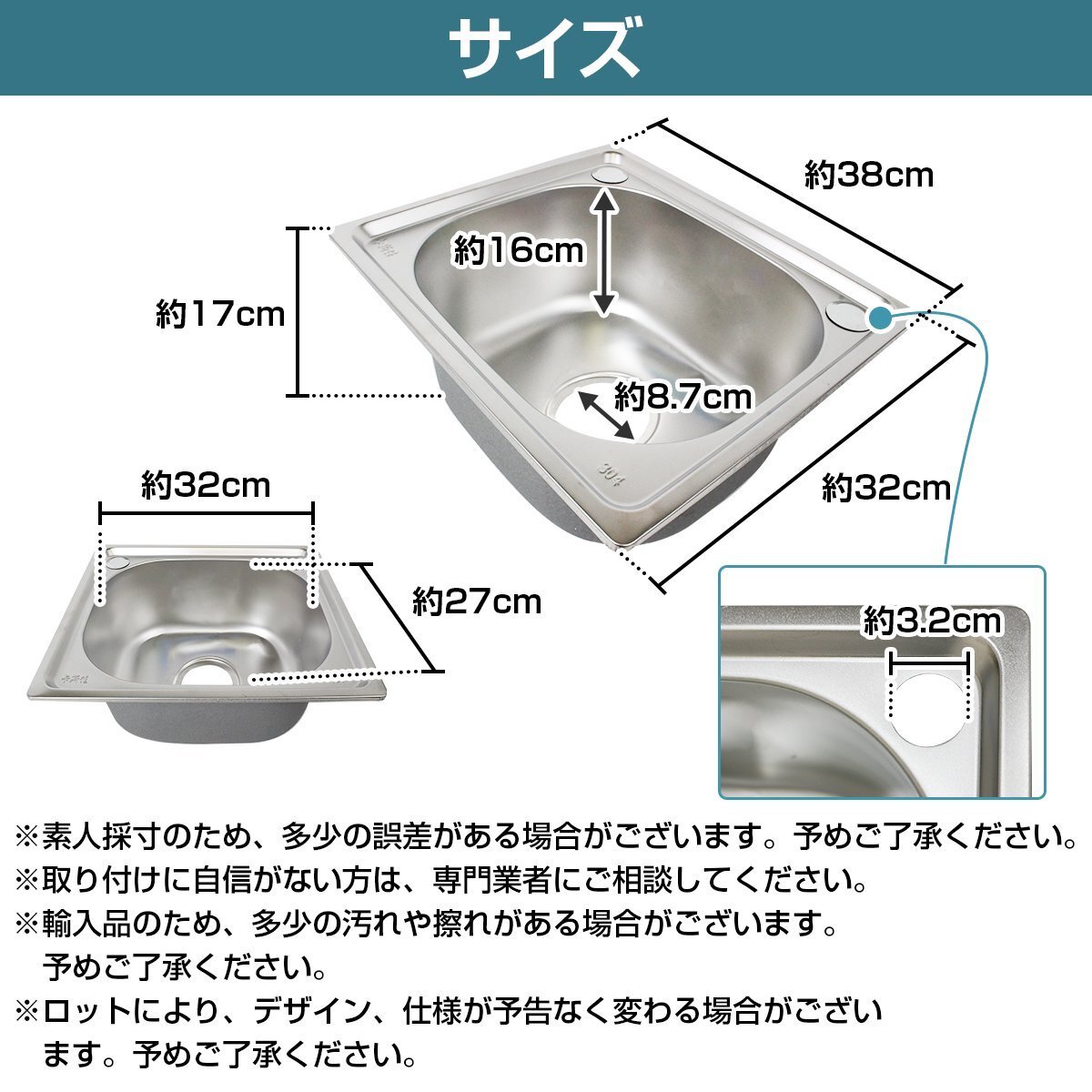 シンク全体:幅 38cm×奥行 32cm×高さ 17cm