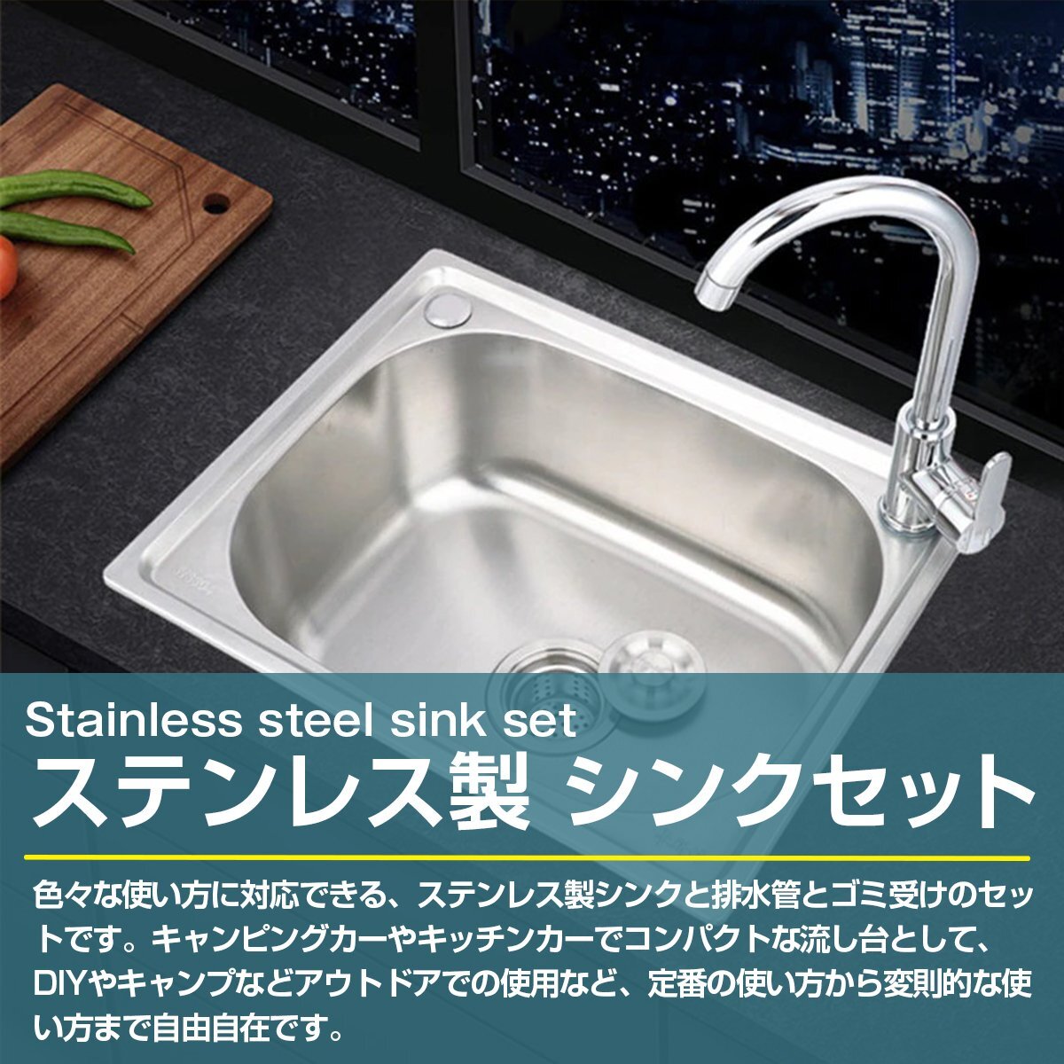 ステンレス製 シンク セット 四角 排水口 ジャバラホース キャンピングカー キッチン コンパクト 流し台 DIY アウトドア かご 生ごみ