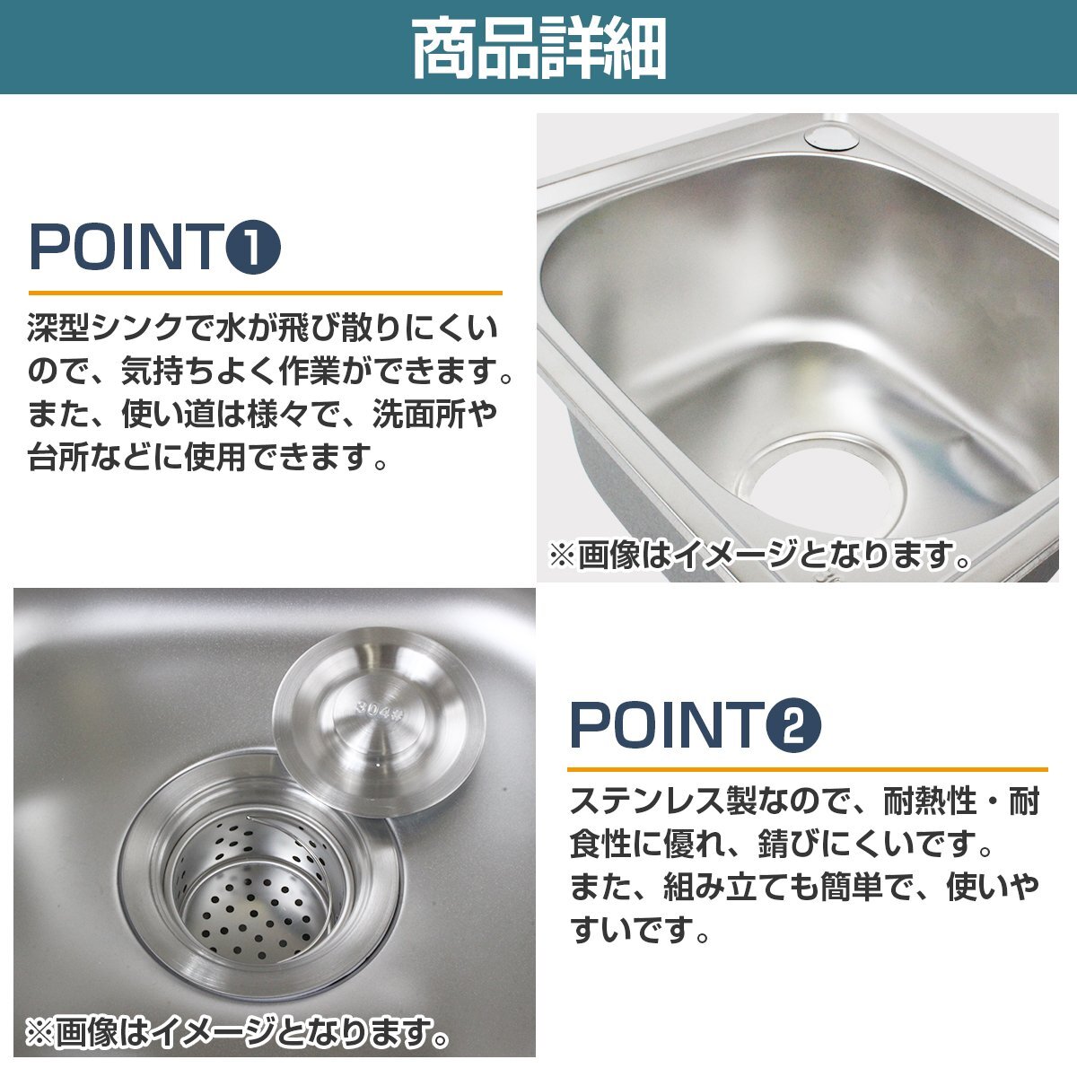 商 品 説 明色々な使い方に対応できる、ステンレス製シンクと排水管とゴミ受けのセットです。