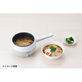| 電気で加熱できる片手鍋です。コンロやIHがなくても、ダイニングで、オフィスで煮る・茹でるの調理ができます。一定の温度を保ってくれるので鍋物やしゃぶしゃぶにもピッタリです。チーズやチョコのフォンデュ鍋としても楽しめます。内鍋はフッ素加工なのでお手入れ簡単です。ゆでたまごのラック付きです。 |