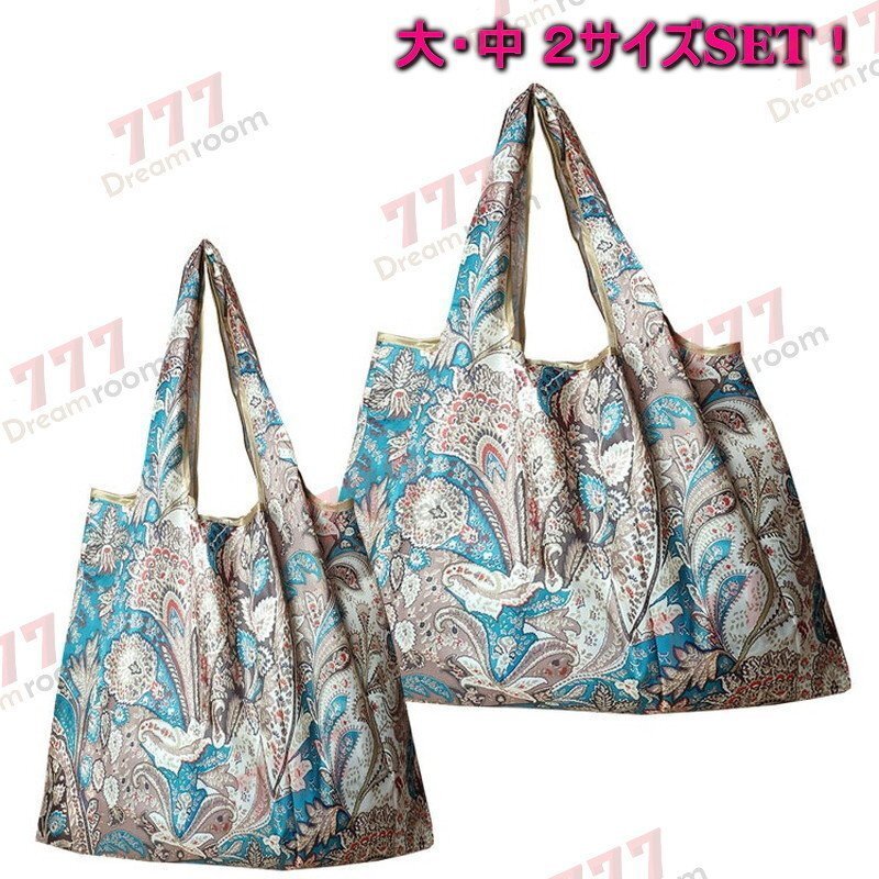 大・中 2サイズset デザイン ショッピングバッグ【F-220-01】 トートバッグ エコバッグ コンビニ袋 折りたたみ