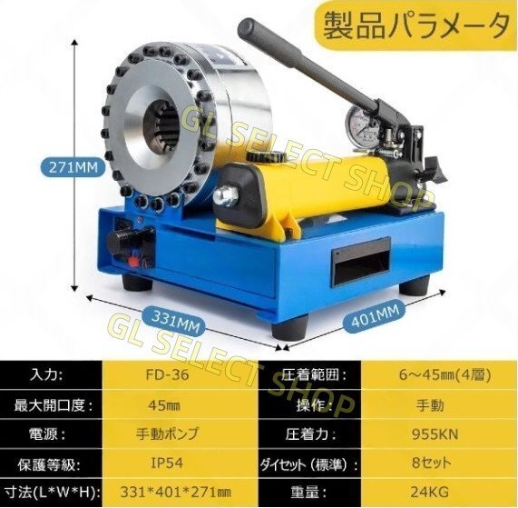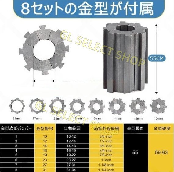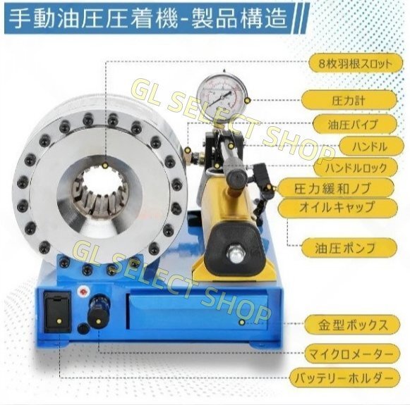 手動油圧圧着機 8セットの金型が付属し 手動収縮機 高圧油管油圧ホース圧着機 35Mpa ホースかしめ工具 油圧ペンチ 油圧ホースパイプ圧着機