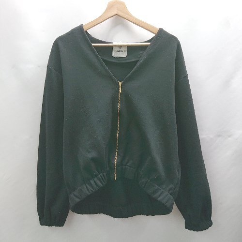 ◇ ⊇ nano universe ナノ ユニバース Vネック ジップアップ 長袖 カーディガン サイズF ブラック レディース E