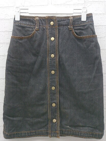 ◇ JUNKO SHIMADA ジュンコシマダ フロントボタン 膝丈 タイト デニム スカート 9 インディゴ *