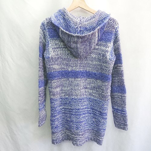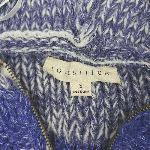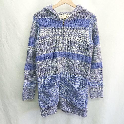 ◇ ⊇ LOVESTITCH ラブステッチ フード付き 長袖 ニットパーカー サイズS ブルー系 ホワイト レディース E