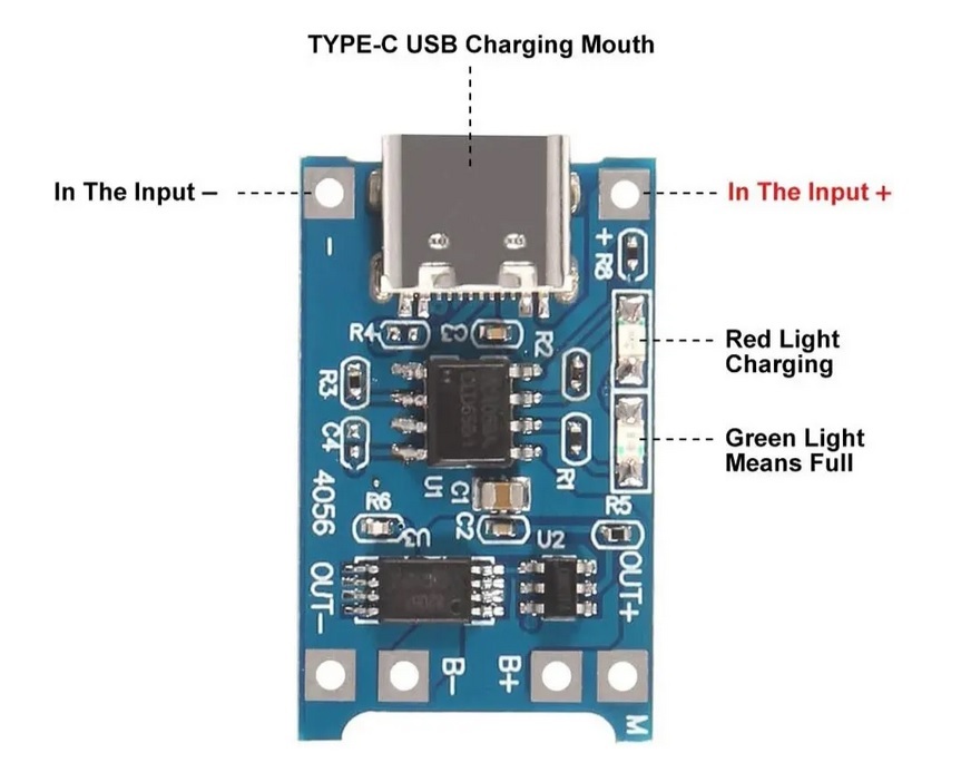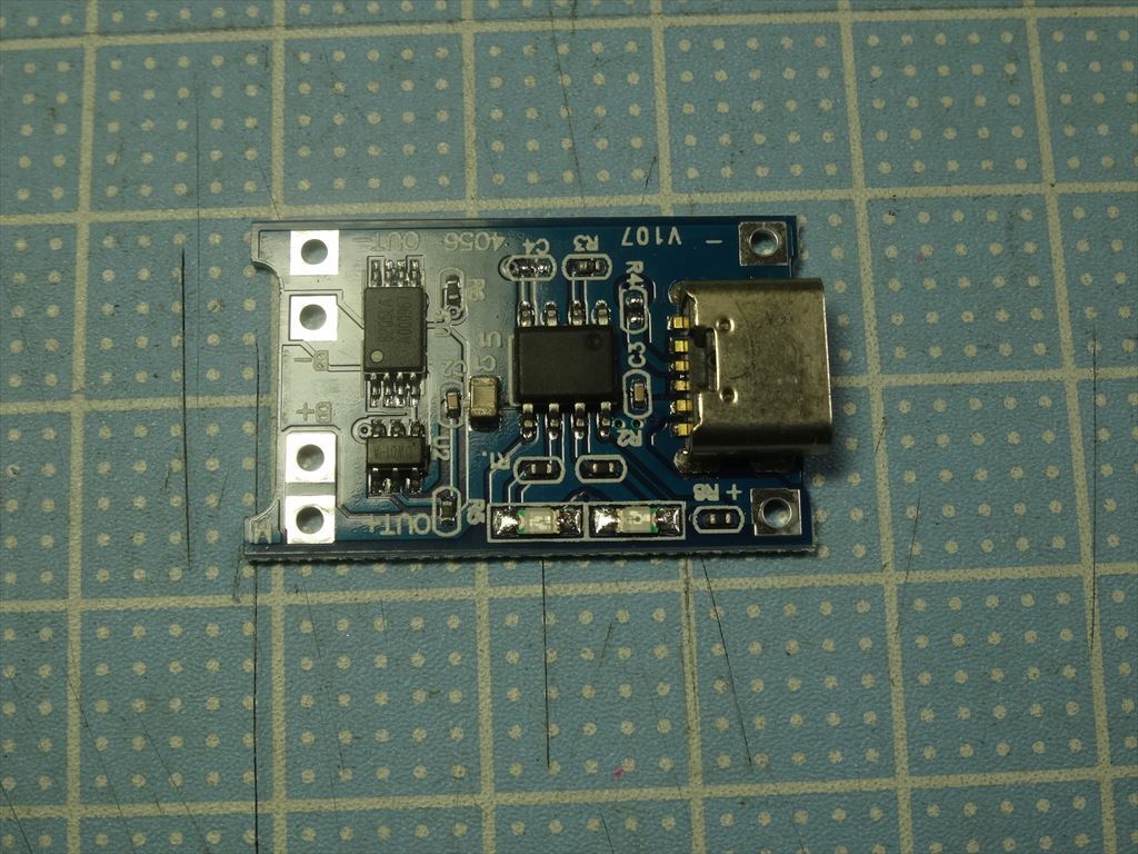 ・USB 5Vで給電し、18650などのリチウムイオン電池を充電するモジュールです。
