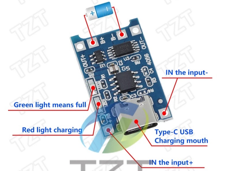 【4個セット】TP4056 USB Type-C 18650リチウム充電モジュール