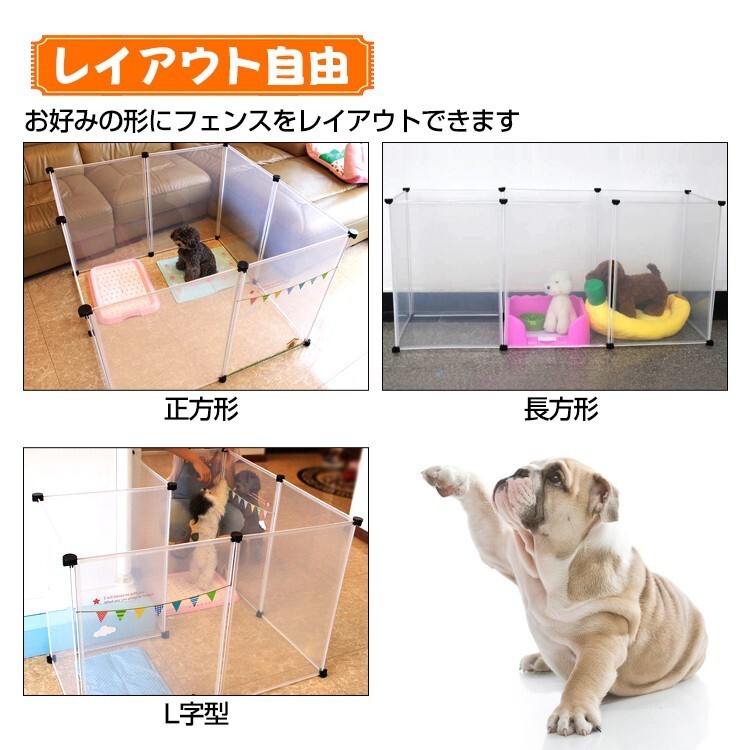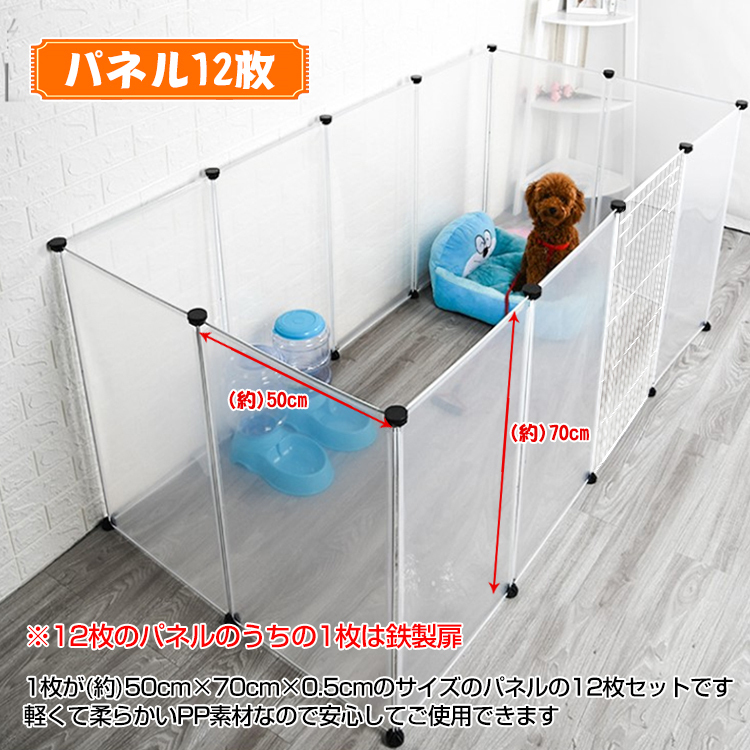 柵 フェンス ペット ケージ 70×50cm 12枚組 透明 ペットサークル 犬 猫 赤ちゃん ベビーゲート 室内 侵入防止 パーテーション 感染対策 レ