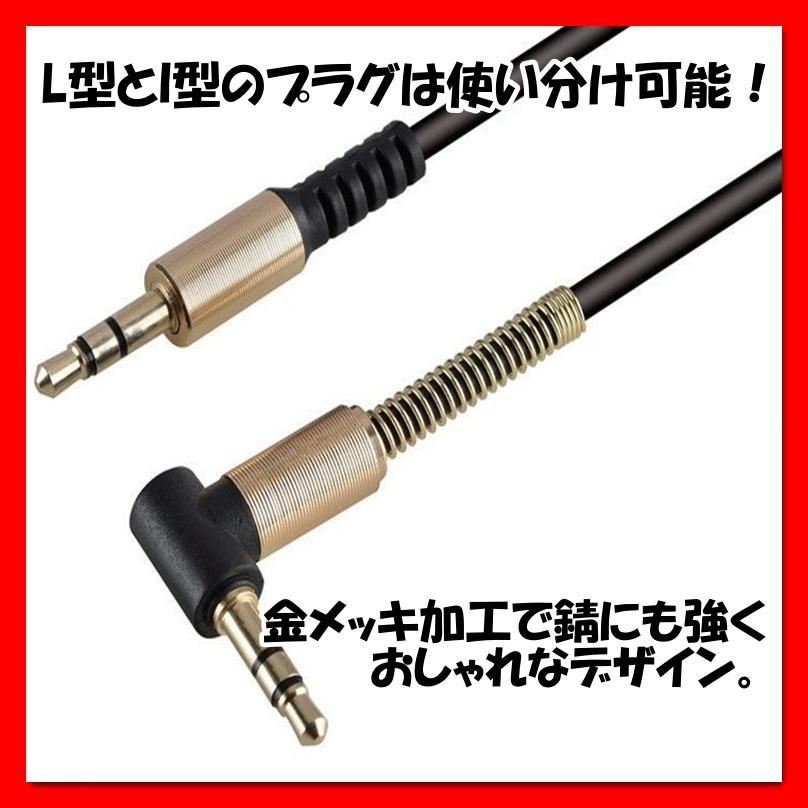 L型AUXオーディオケーブルなので使いやすい!