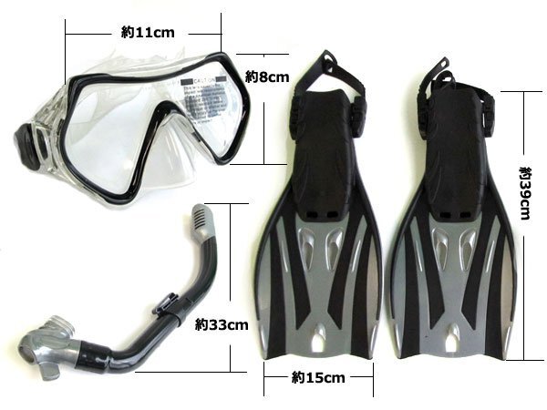 3点セット 子供用 キッズ シュノーケル セット マスク フィン ブラック S/Mサイズ 18cm~20.5cm シュノーケリング 曇り止め 水中メガネ