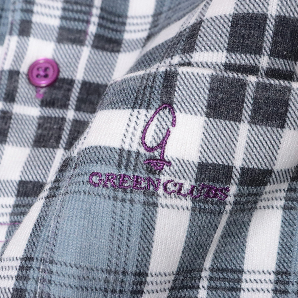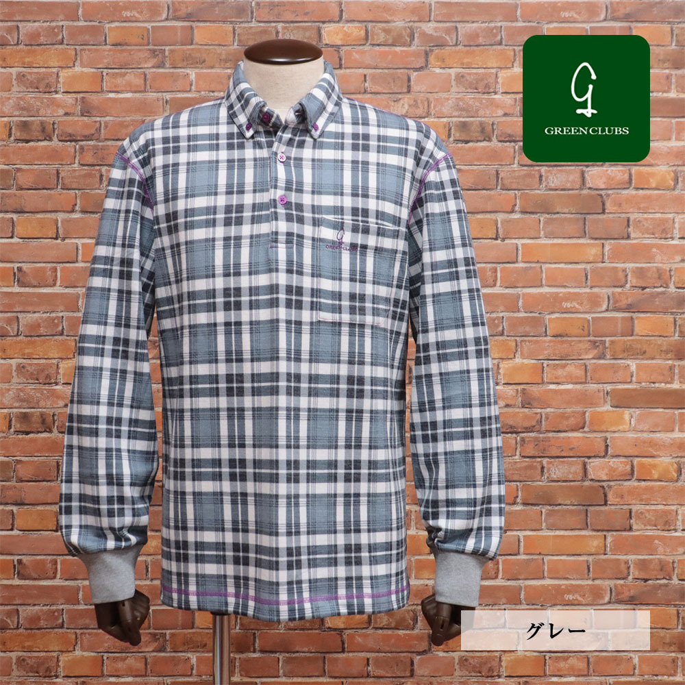 1円/秋冬/GREENCLUBS/5(LL)サイズ/長袖ポロシャツ チェック ふんわり微起毛 暖か グリーンクラブ 新品/グレー/mb372/