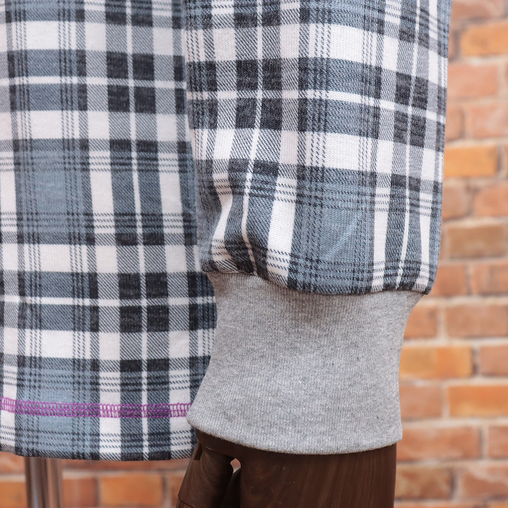 落ち着きのあるチェック柄に、ボタンとステッチ、更には袖口のリブの配色がアクセントになった、大人の遊び心あふれる仕立て。一枚で着るのはもちろん、ジャケットやアウターのインナーとしても活躍する、大人の秋冬スタイルに取り入れやすい一着です。