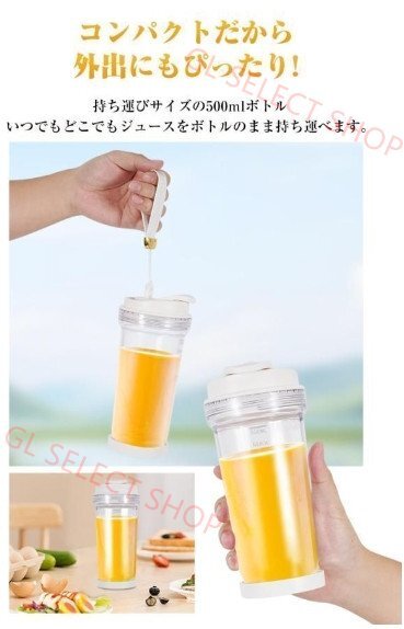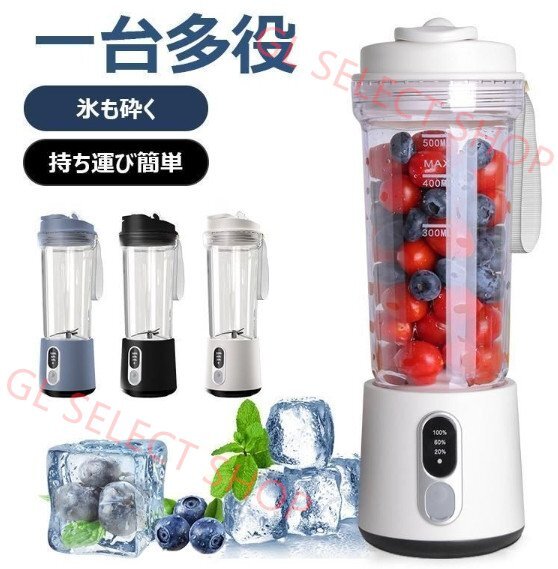 ミキサー ジューサー 小型 氷対応 ブレンダー 500ml ボトルブレンダー 静音 大容量 ジュース スムージー 電動ミキサー 充電式 お手入れ簡単