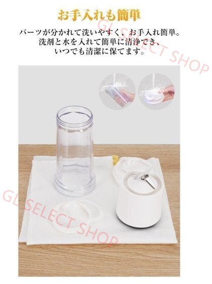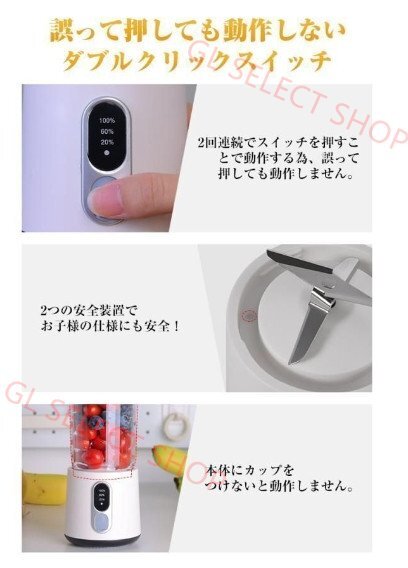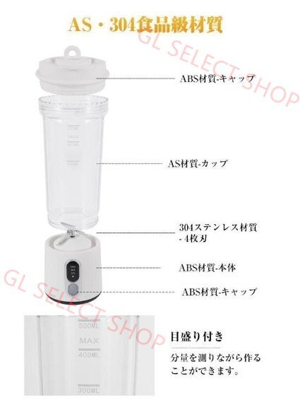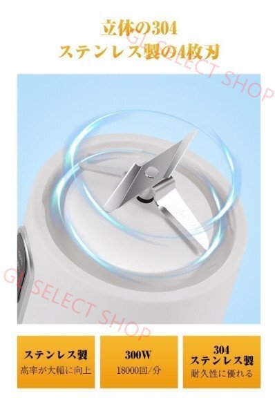 コンパクトけど、動力は伝統ミキサーに負けない!ダブルリチウム電池と強力な300Wのダブルパワーモーターを搭載し、1分18000回に高速回転できます。防錆の4枚刃回転ブレードを使用し、氷でも砕けます!フル充電で約15?20カップのジュースを絞ることができます。わずか40秒でおいしいジュースが楽しめる!