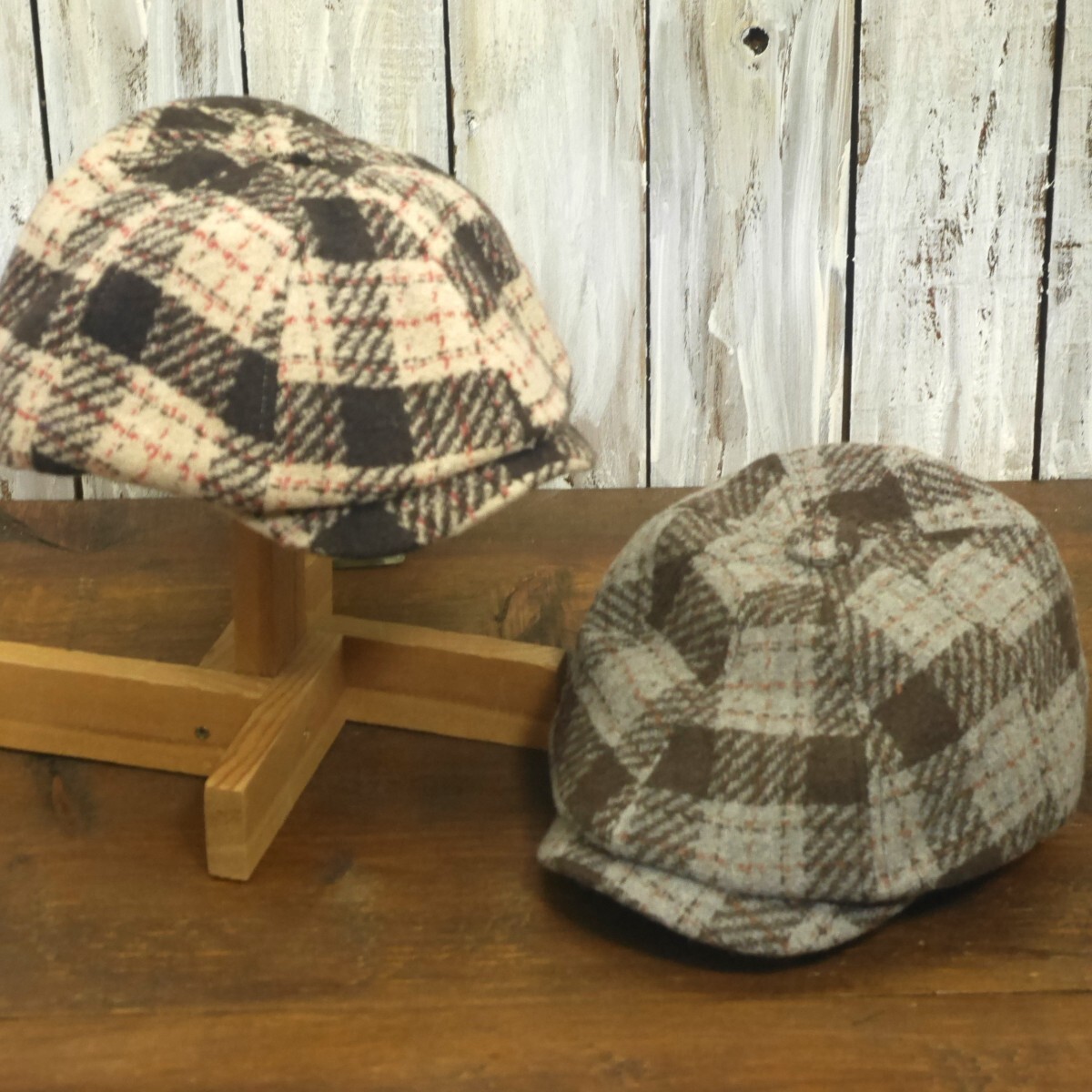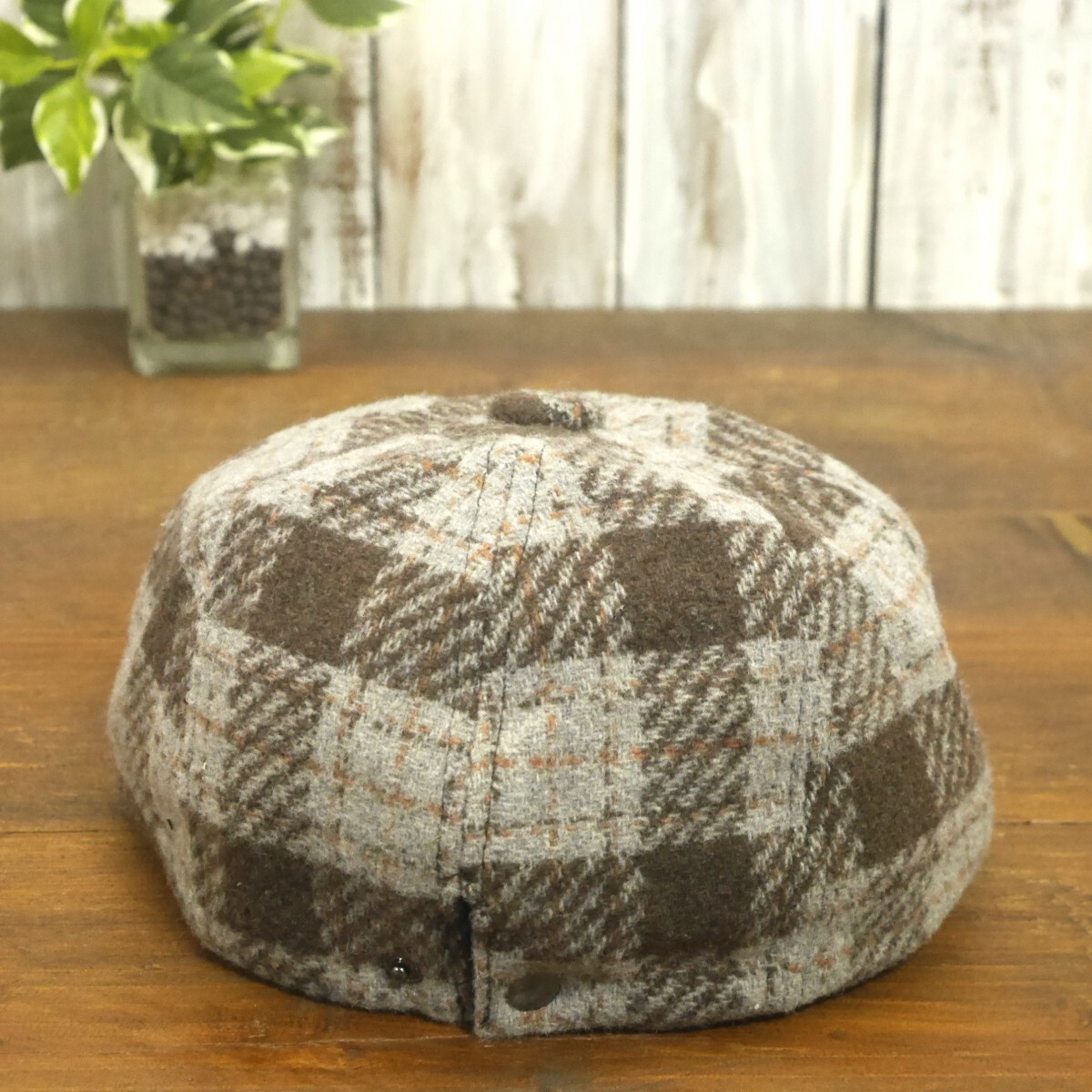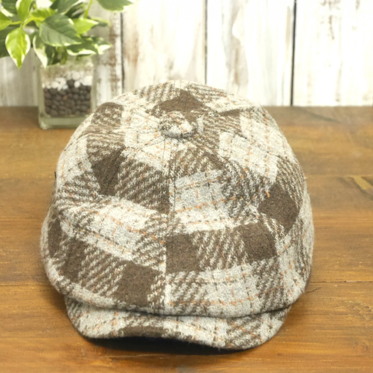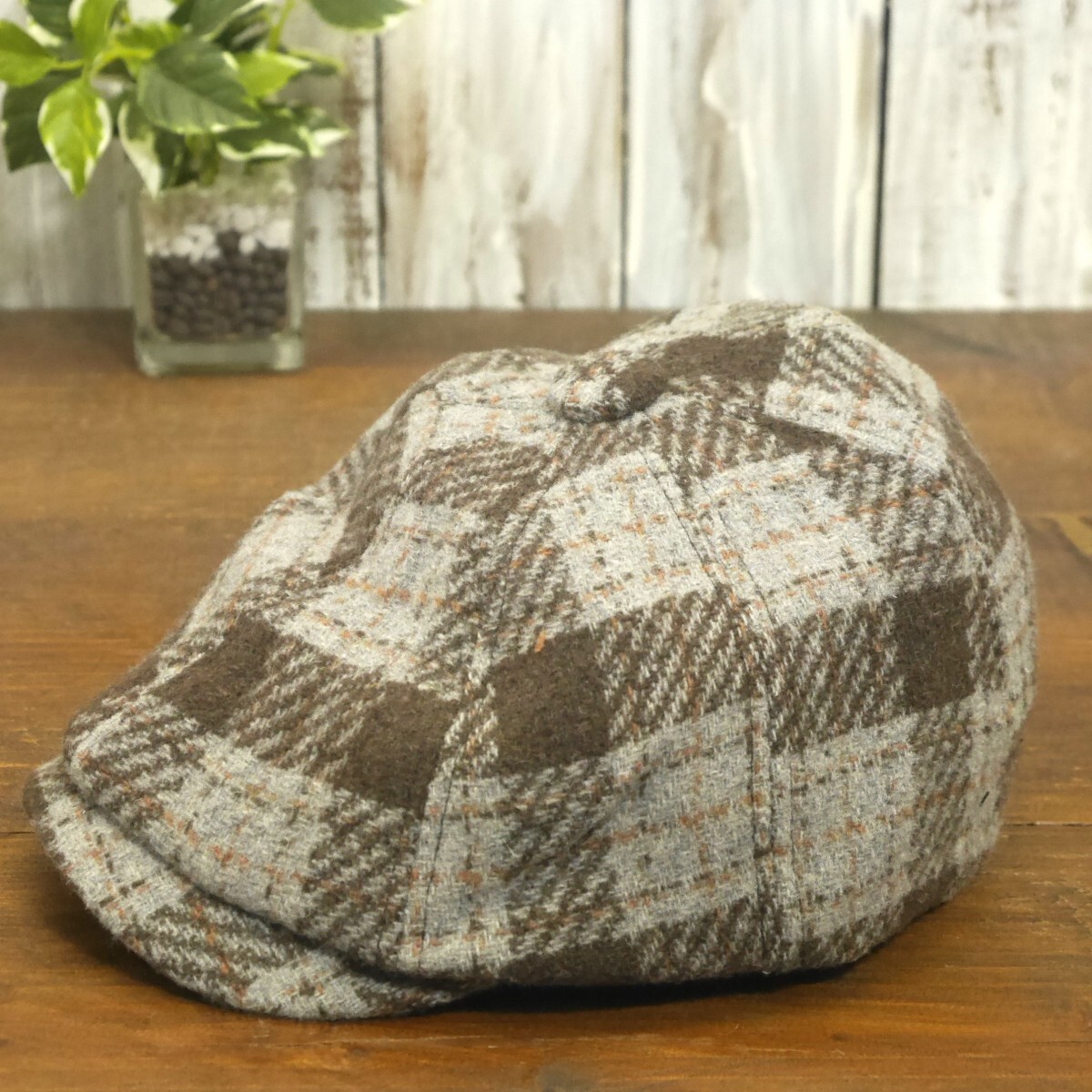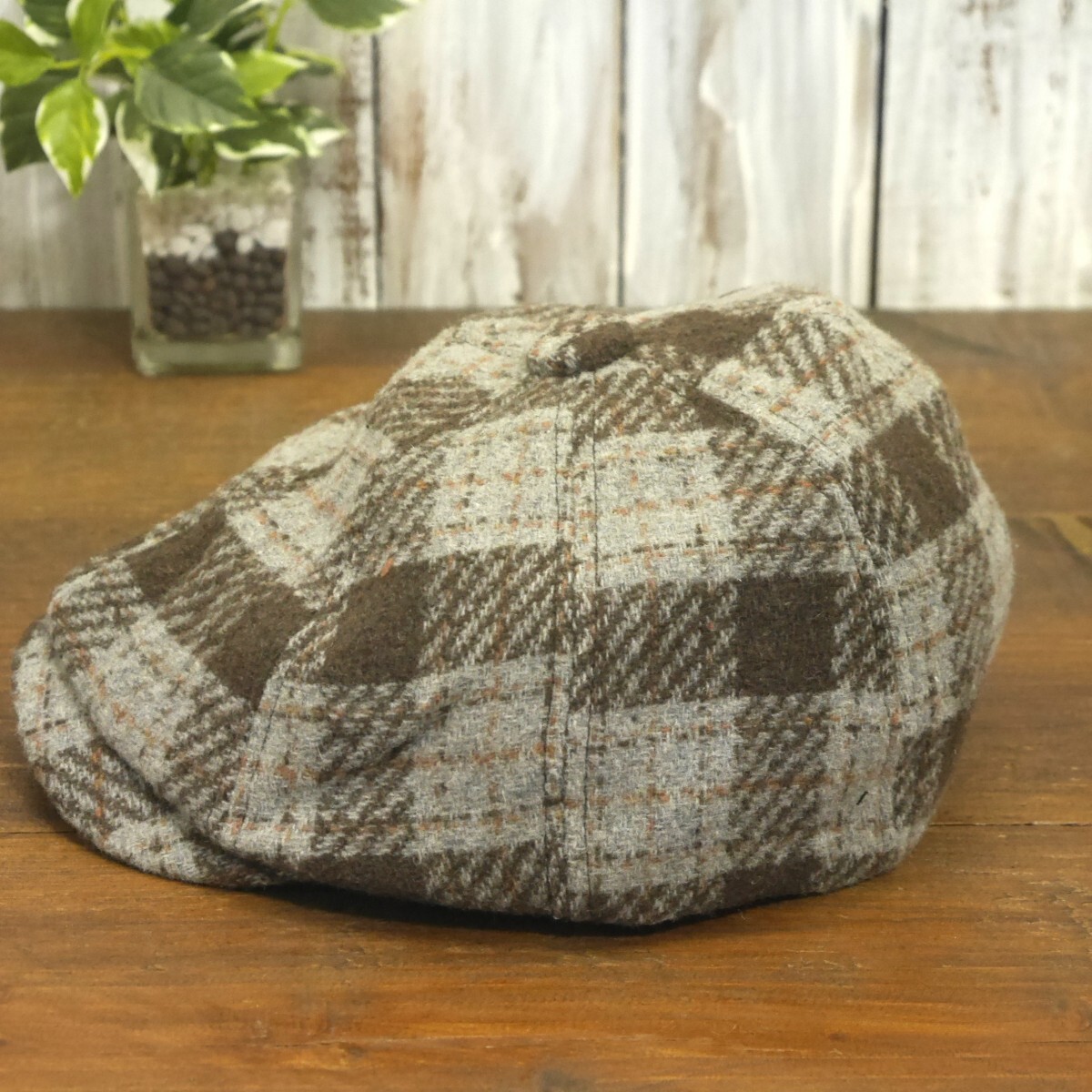 ウール キャスケットハンチング オーバーチェック グレー ブラウン シンプル ニュースペーパー サイズ調整可 送料\450 男女兼用