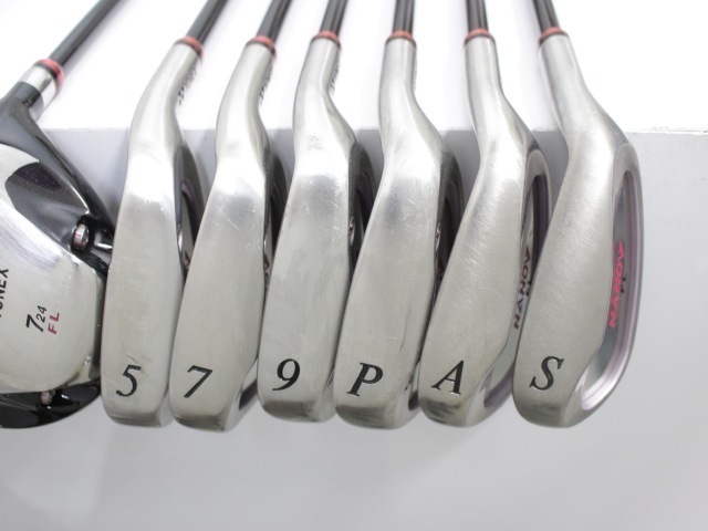 | セット内容:1W、7W、5I.7I.9I.PW.AW.SW。ヘッドカバーはありません。状態は使用感は少なく、細かい傷はありますが全体的にキレイな状態です。ウッド類のクラウンも目立つような塗装傷はなくキレイな方です。シャフトとグリップも特に問題ありません。 | |||