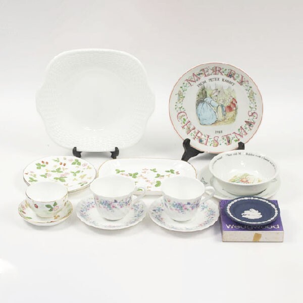 【中古】WEDGWOOD ウエッジウッド ワイルドストロベリー ピーターラビット スクエアー皿 プレート 小皿 カップ&ソーサー まとめて #19618