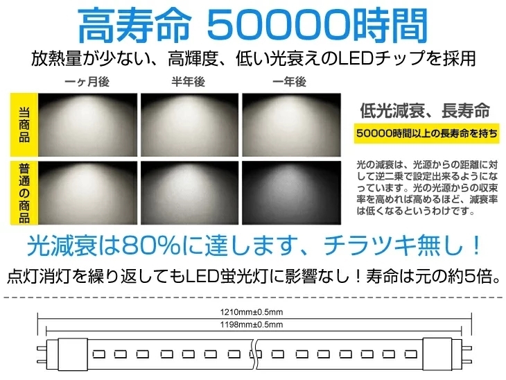 驚異的な照射能力と耐久性が持ってます。ムラなく均一の発光で、すっきりと対象物を照らします。 ◆驚きの長寿命: LEDの放熱率が少ない、光衰えも低い、寿命は一層長くなります。 ◆航空アルミを採用: 航空アルミニウムを採用して散熱性能は強くなり、熱で変形しにくいです。 ◆安全性が高い: LED蛍光灯は低電圧駆動を採用して、安全性が高い。 ◆高透明度材料: 高透明度拡散型乳白色のPC材料を利用します。耐高温、長期間使用することができます。 ◆広い使用範囲: 商品棚、ショーケース、陳列窓、トイレ、台所、ホテル、広告、レストランなどに適合! 【保証】 ◆当商品は12っヶ月保証となります。 ◆お届けから1週間以内にご連絡のあった不良品の保証対応の送料は当方が負担いたします。 ◆保証期間内の不良品ですが、交換のみ対応しております。往復送料はお客様負担となります。在庫がない時だけ返金しますので、ご了承ください。 |
