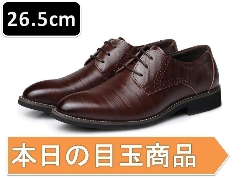 本日の目玉 ☆ メンズ ビジネス レザー シューズ ブラウン サイズ 26.5cm 革靴 靴 カジュアル 屈曲性 通勤 軽量 【208】
