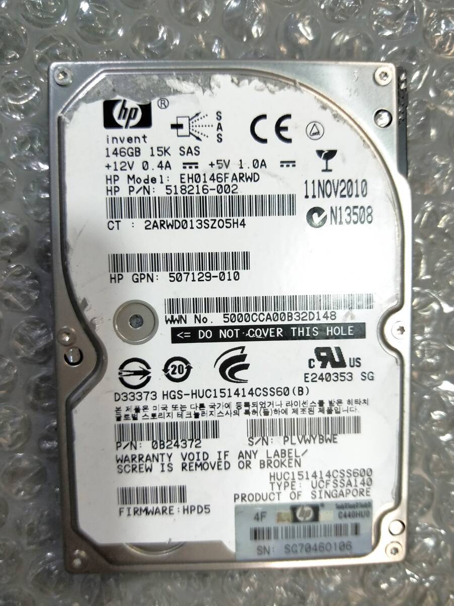 【中古パーツ】 2.5イン HP EH0146FARWD 15K SAS 146GB HDD 正常品 1台■ SAS 2543