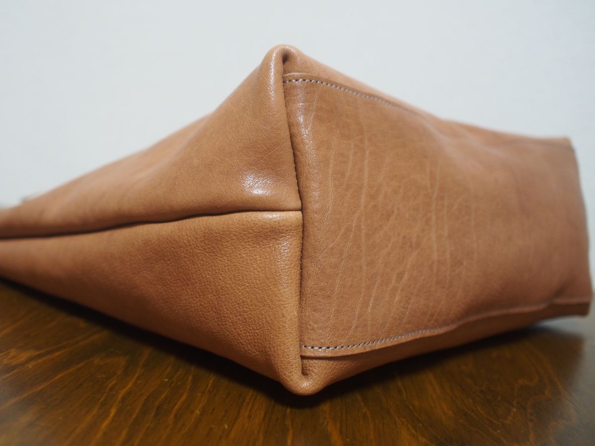 天然タンニン鞣しのプルアップレザーです。物理的な作業によってシワを強調させている特徴な革です。使い込んでいくうちにツヤ・味がでてきます。私たちが知っているかぎりこの革を使用しているところは、数少ないです。