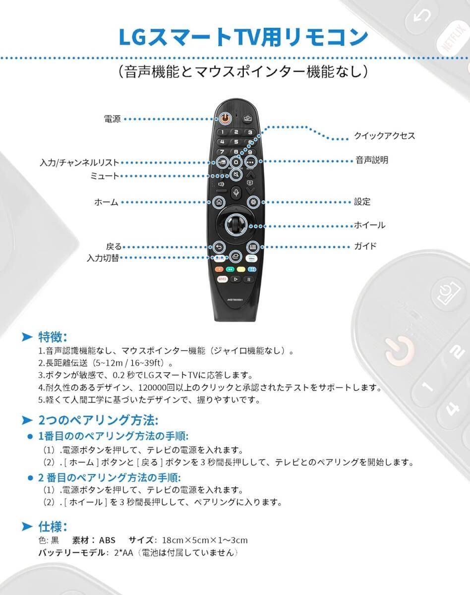 LG Smart TV Magic用 リモコン LGマジックリモコンAKB75855501 LGマジックリモコン 交換用 LGスマートTV全機種対応