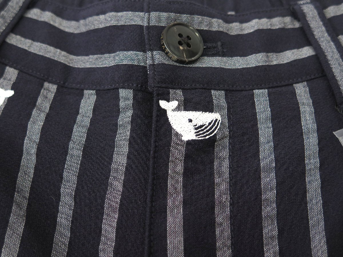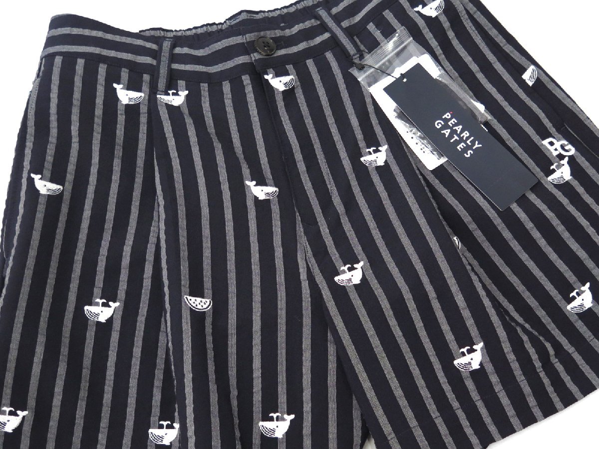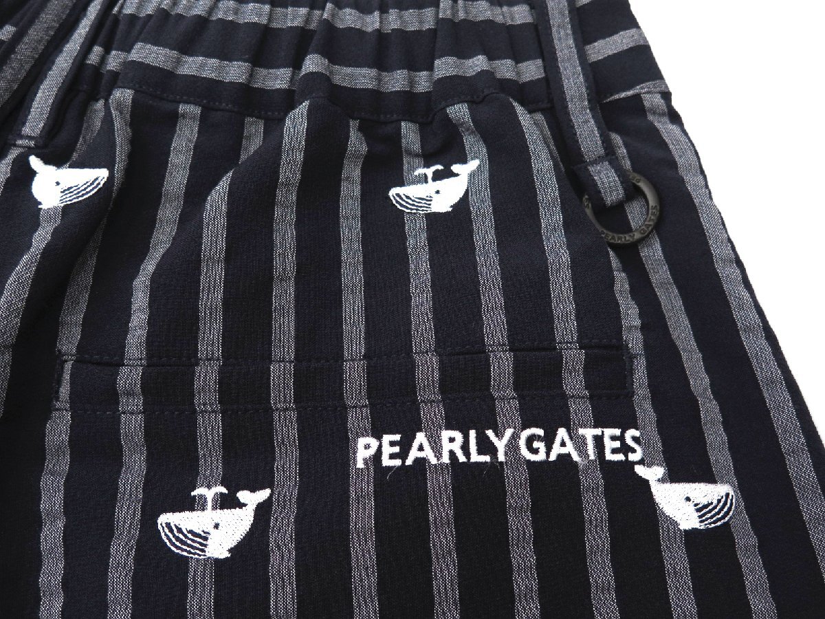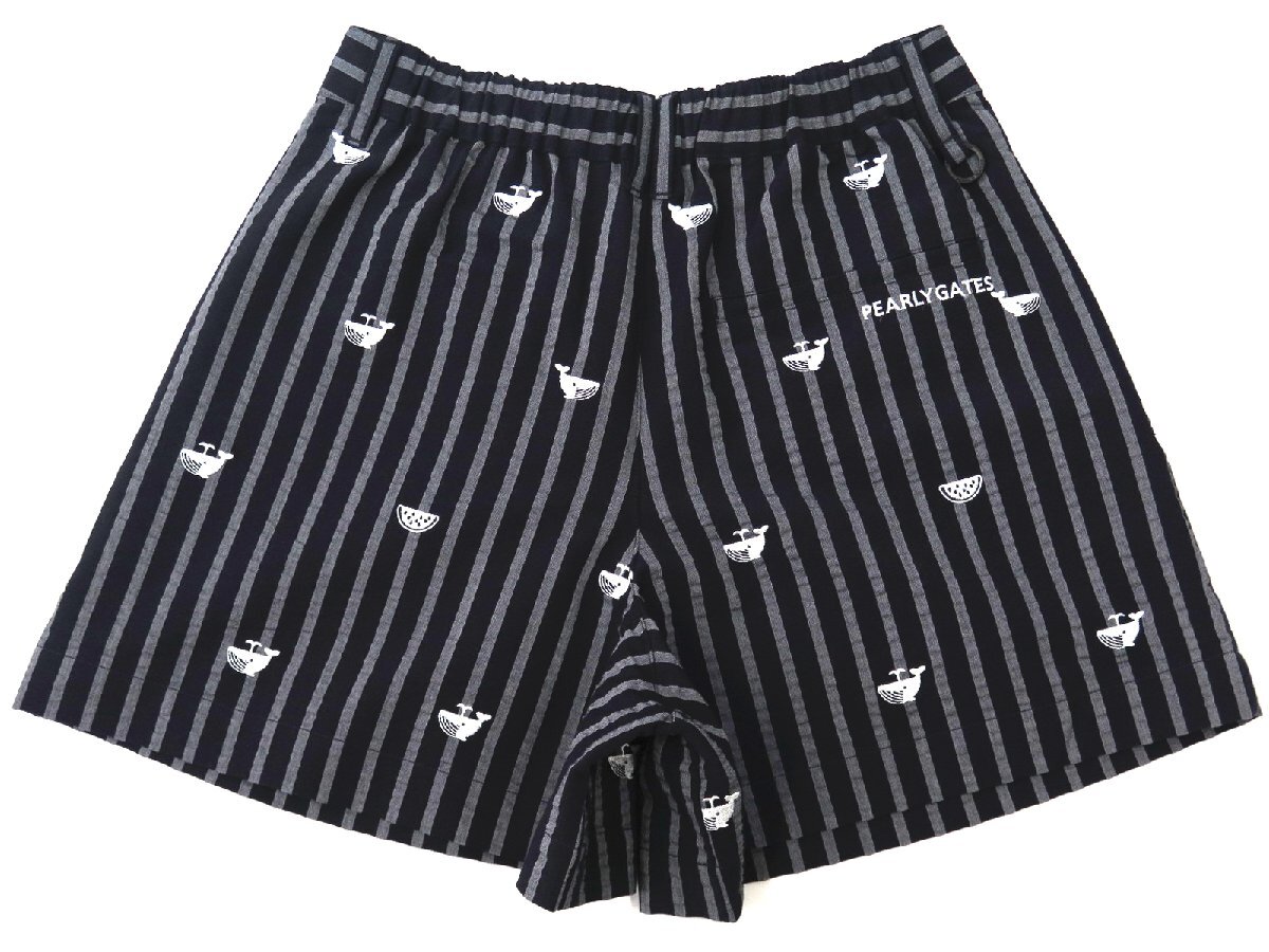 商品名● PEARLY GATES パーリーゲイツ ●新品 【クジラ&スイカ刺繍】 サッカーストライプ ストレッチ キュロット 濃紺/S 定価30800円