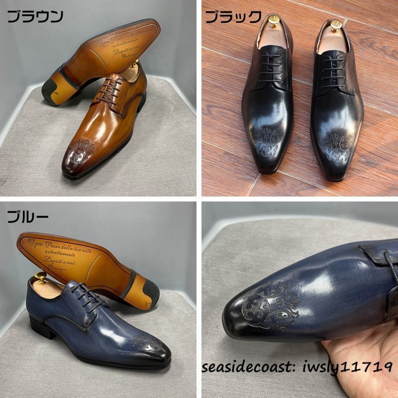定価9万超★メンズ ダービーシューズ 本革 レザーシューズ 職人手塗り上げ ビジネスシューズ 牛革 紳士靴 革靴 フォーマル ブラック 27.0cm
