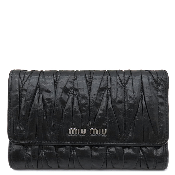 | ミュウミュウ MIU MIU 三つ折り財布 マテラッセ レザー ブラック黒 シルバー金具 - レディース 【箱】定番 人気 美品 中古 | |