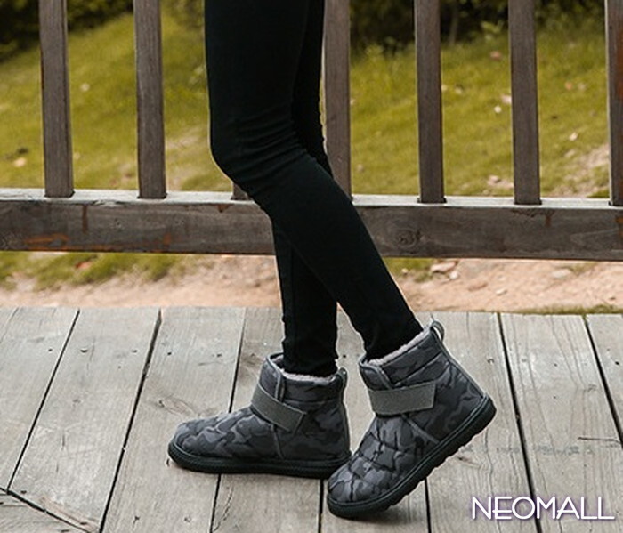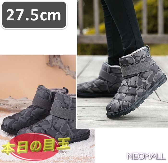 ユニセックス スノーシューズ 【870】 27.5cm 迷彩グレー ムートンブーツ スニーカー ウィンターブーツ 裏起毛 防水 防寒 防滑 冬用靴