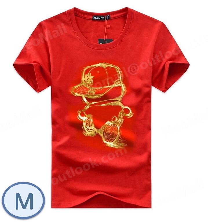 夏にピッタリ ☆ 丸首 半袖 Tシャツ【070】 レッド Mサイズ トップス シャツ シンプル イラスト プリント 春夏
