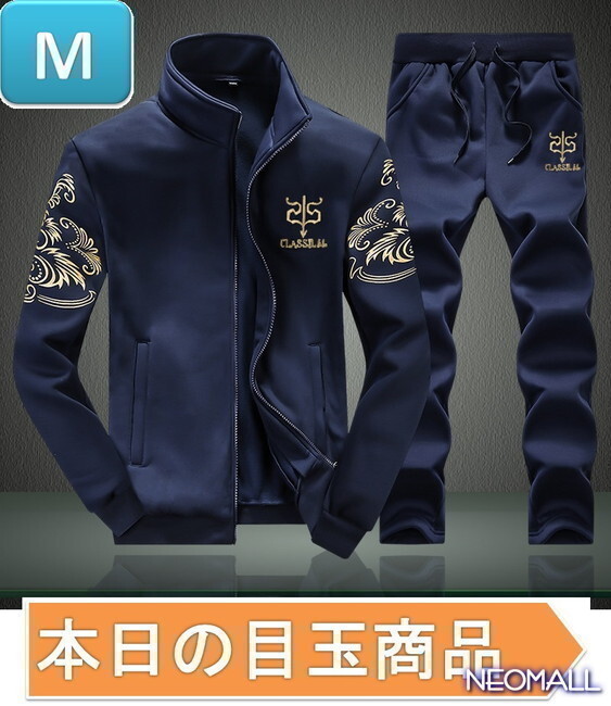 【今日の目玉】メンズセットアップ 上下セット ☆238 ネイビー Mサイズ ジャージ スウェット お兄系 部屋着 おしゃれ