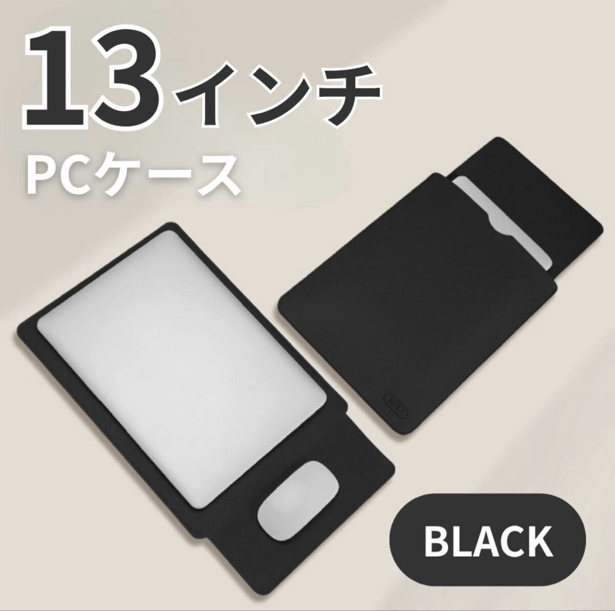 sale★PC タブレット ケース 13インチ MacBook レザー 黒 スリム 薄型 通学 シンプル 軽量 インナーケース ノートパソコン 新品 未使用
