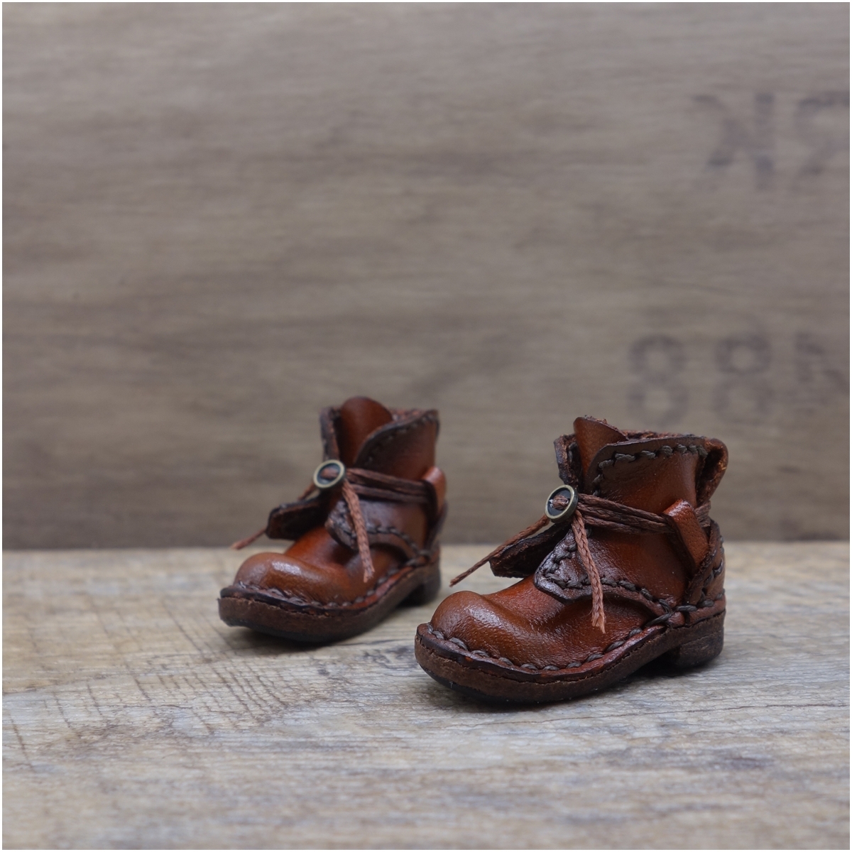 ■商品名:ヴィンテージ調 紐巻きボタンブーツ レディッシュブラウン系