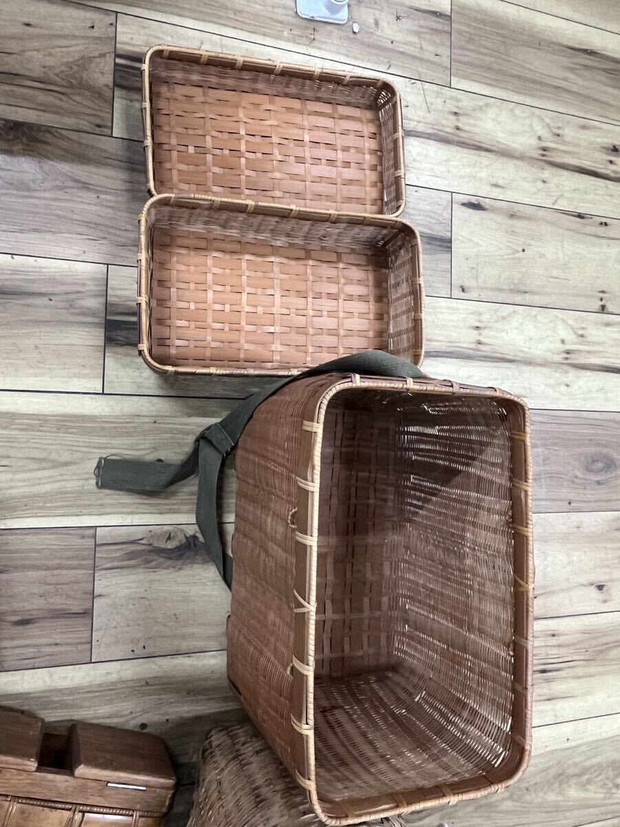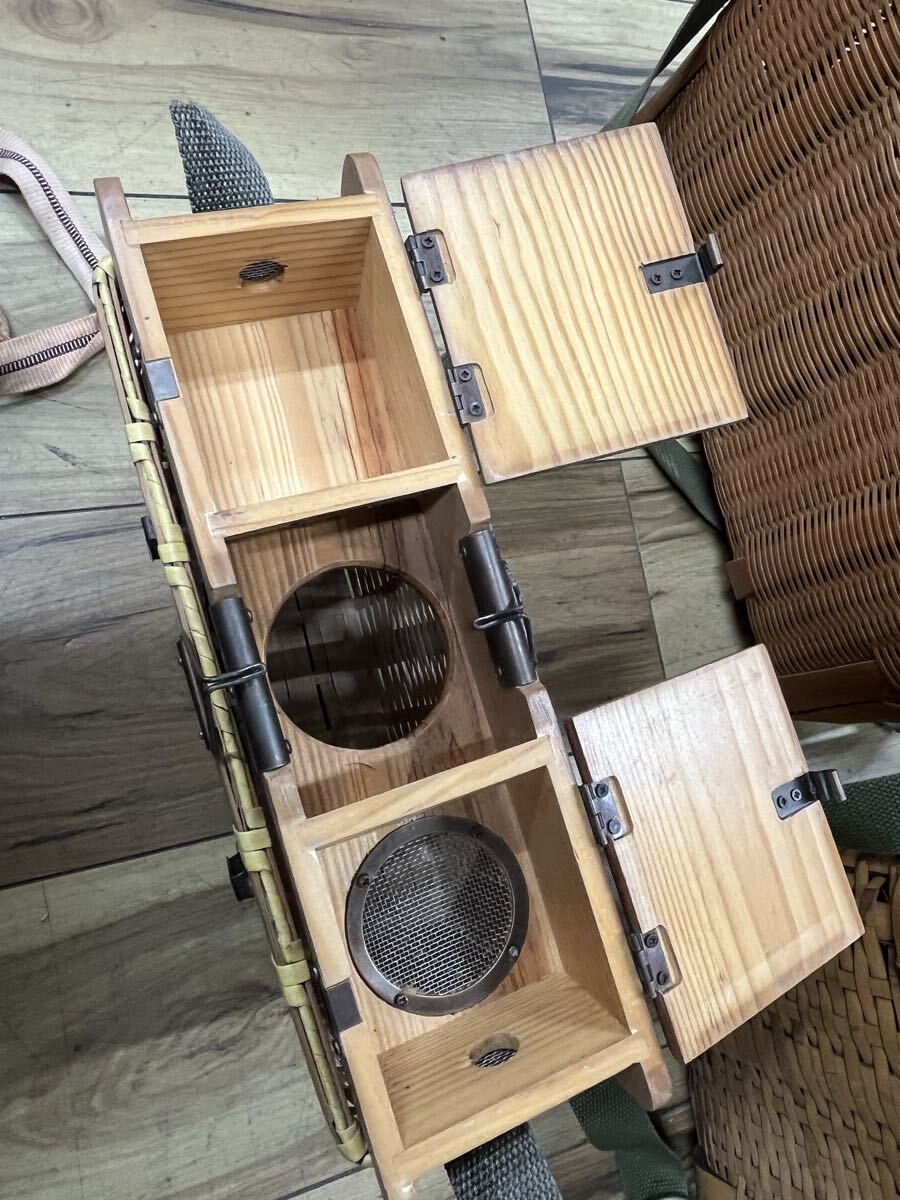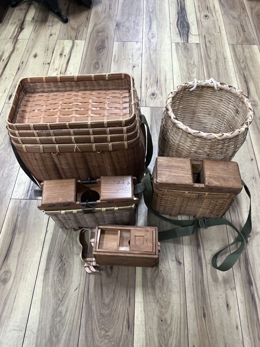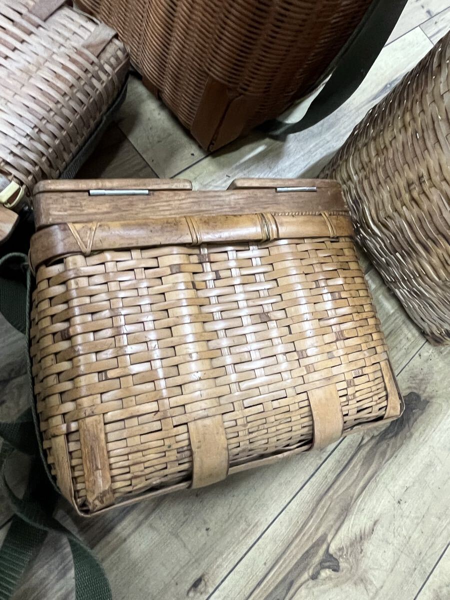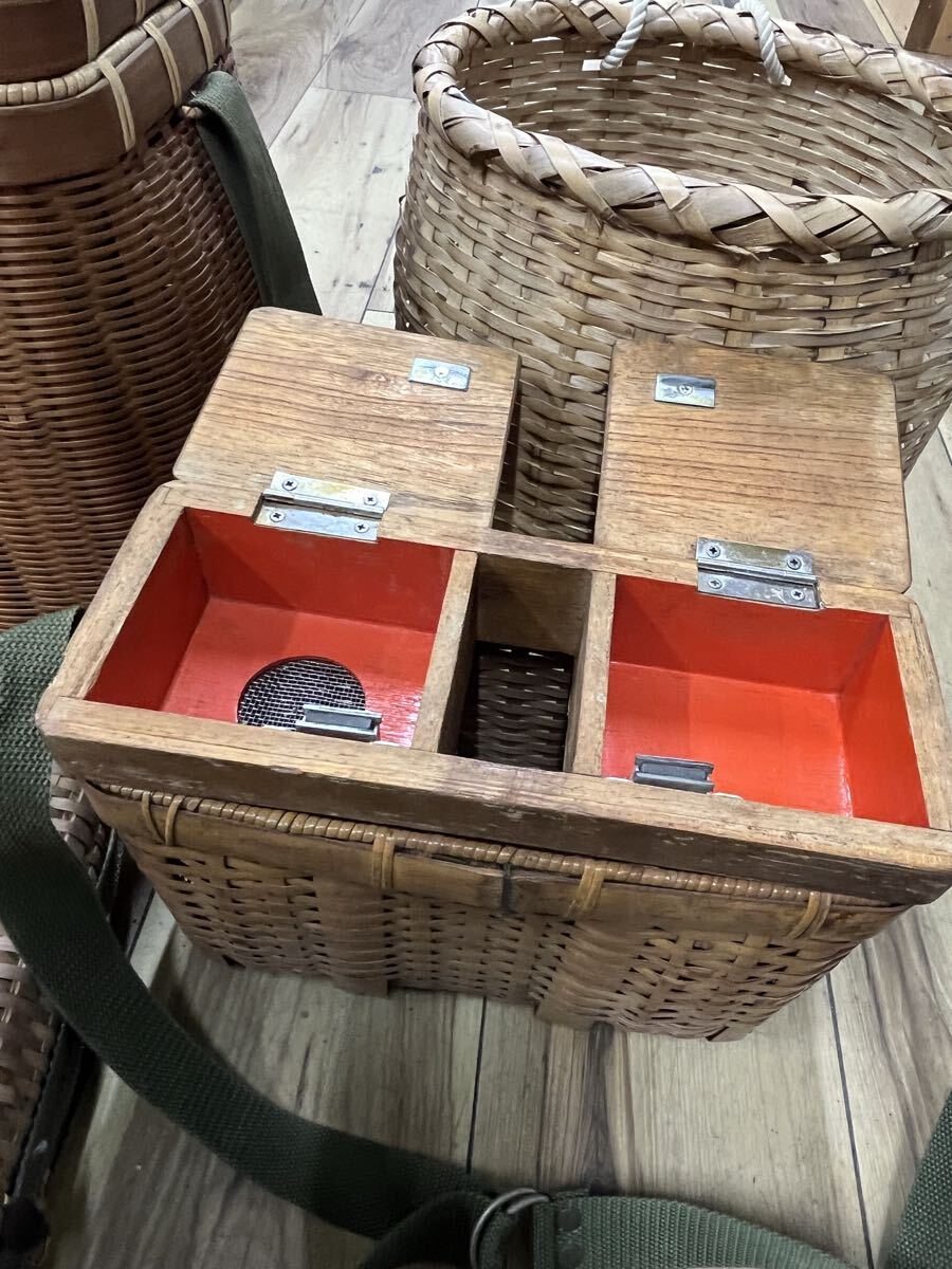 | ○竹製魚籠 ビクおまとめセット 篭 渓流釣り 漁具 びく 花器 エサ入レ付 山女 ビク横 ヤマメ○ | |