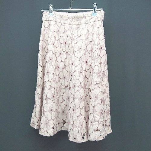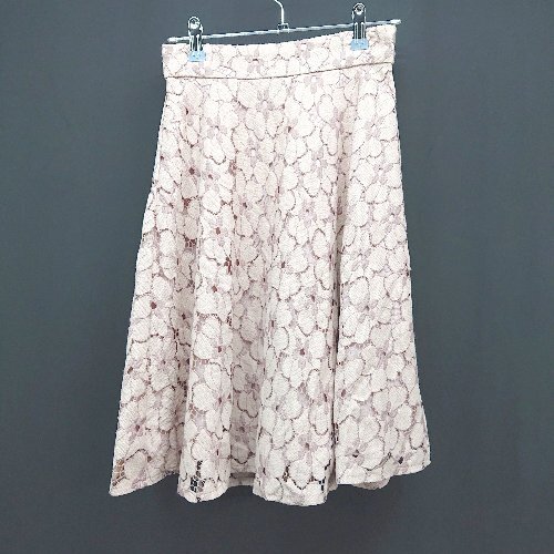 ◇ PUROPORTION 花柄 レース フェミニン かわいい 膝丈 フレア スカート サイズ2 ピンク レディース E