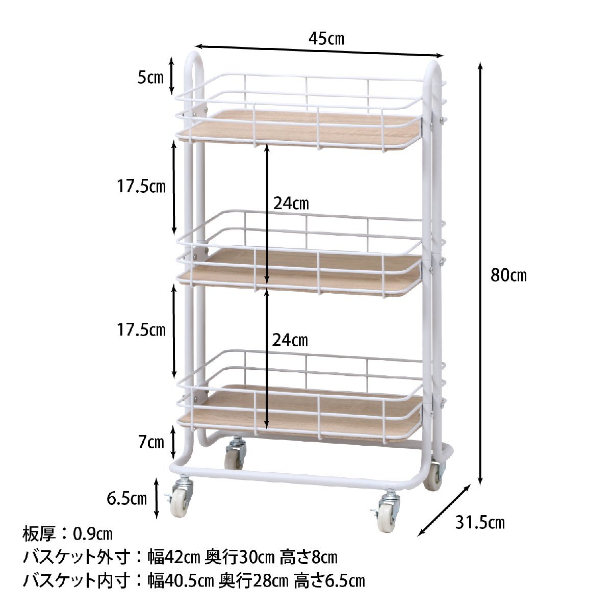 | サイズ | 全体:幅450 × 奥行315 × 高さ800mm 耐荷重(バスケット):5kg 板厚:9mm ※サイズ詳細はサイズ画像をご参照ください。 |