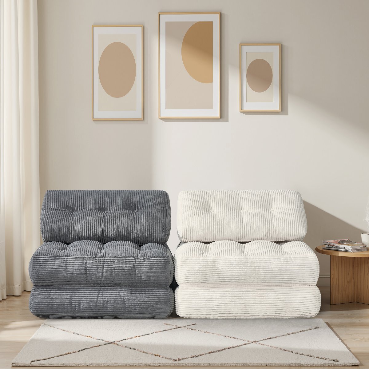 • 耐久性のある生地:プレミアムなコーデュロイ生地を使用し、独自の視覚的・触覚的な体験を提供。お部屋の雰囲気を格上げします。