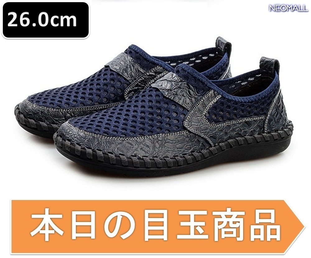 1スタ☆ ローファー ドライビングシューズ【405】ネイビー 26.0cm メッシュ 夏 通気 軽量 スニーカー スリッポン 紳士靴 カジュアル