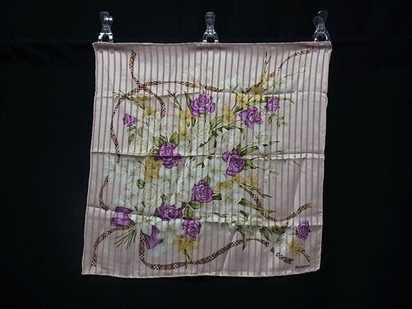 ■美品■ Burberrys バーバリーズ フラワー 花柄 スカーフ ストール ショール レディース ピンク系×マルチカラー DI8049