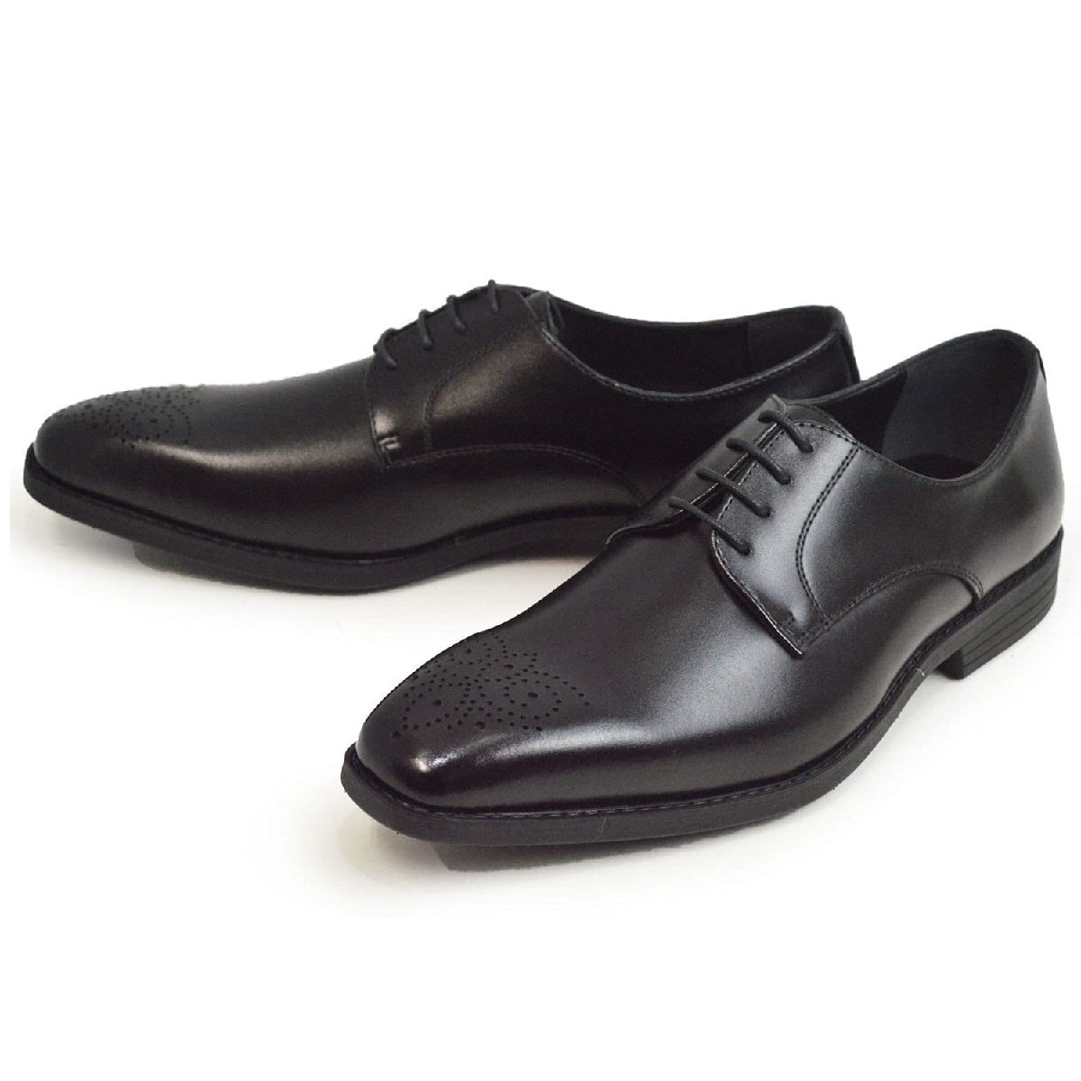 新品■28cm 本革 ビジネスシューズ ビジネス メンズ レザー 幅広 3E EEE 軽量 防滑 外羽根 レースアップ メダリオン 革靴 紳士靴 靴