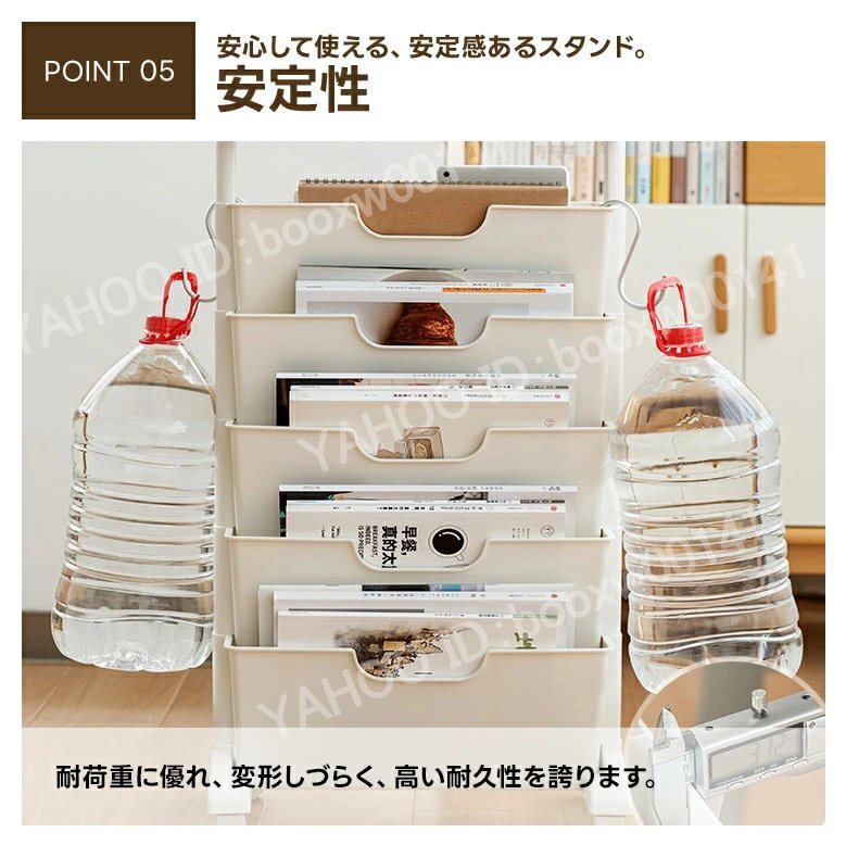 マガジンラック キャスター付 オープンラック 書類収納ラック ファイルワゴン ロック機能付き ブックスタンドラック ピンク hhw0043.2
